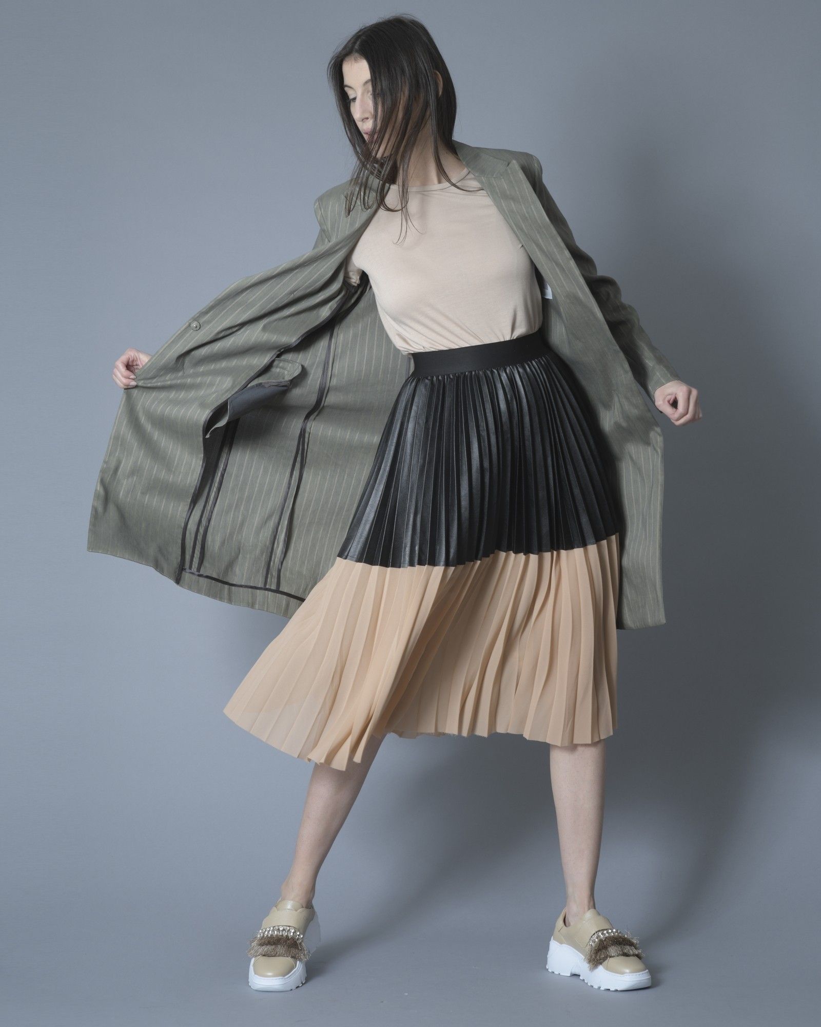 Le mannequin mesure 1m79 et porte une taille S.