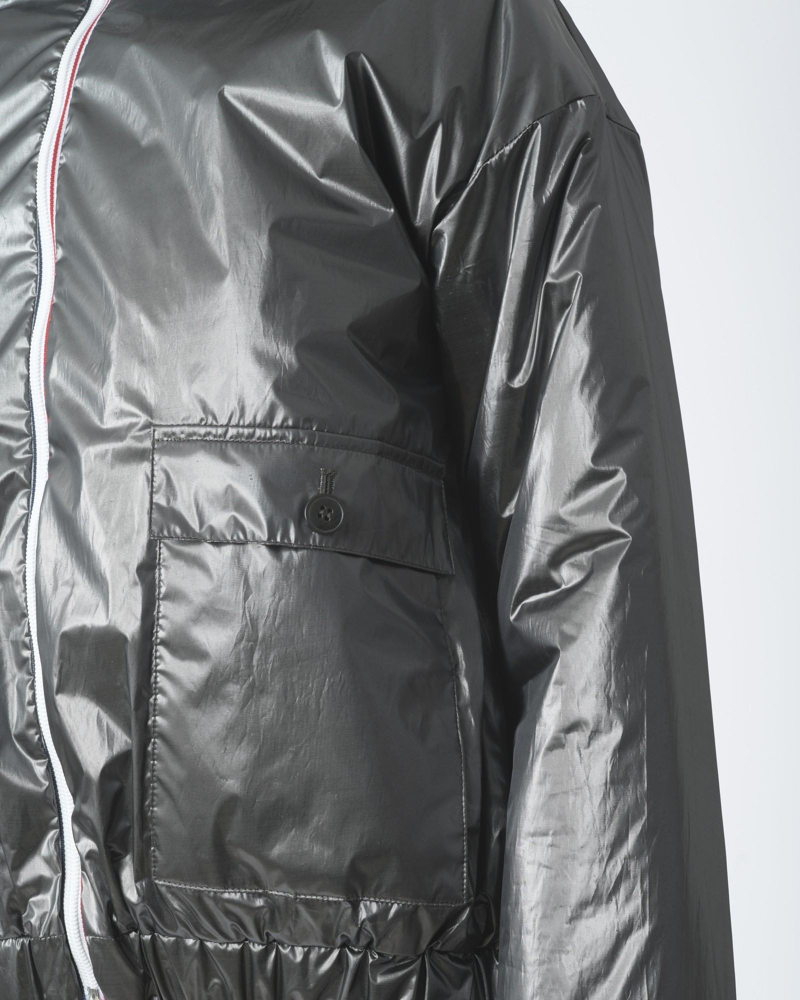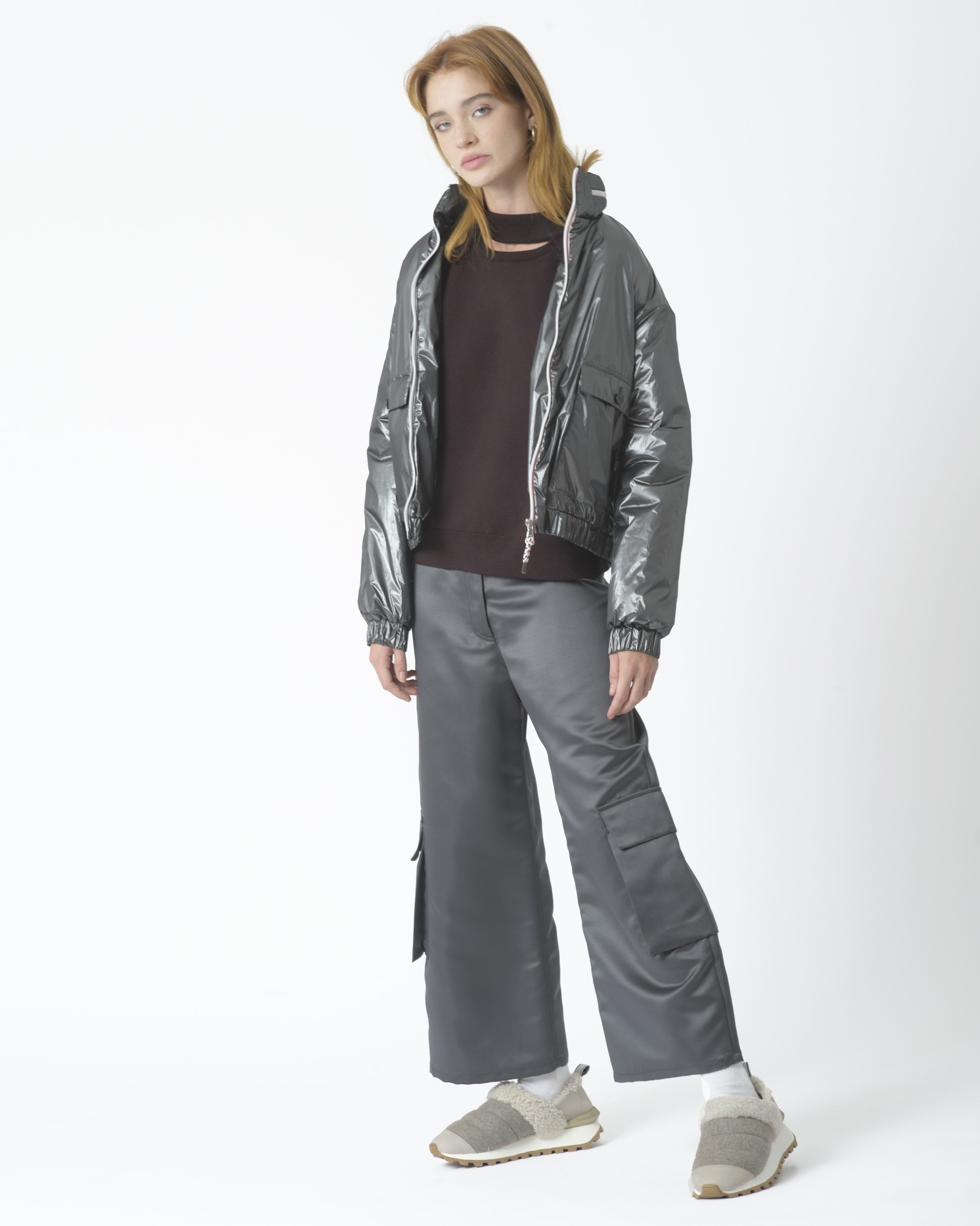 Blouson court Chloé Stora. Détails: Blouson court, col montant, double poches plaquées devant avec rabats, système de fermeture standard par fermeture à glissière, capuche intégrée rangeable dans le col.