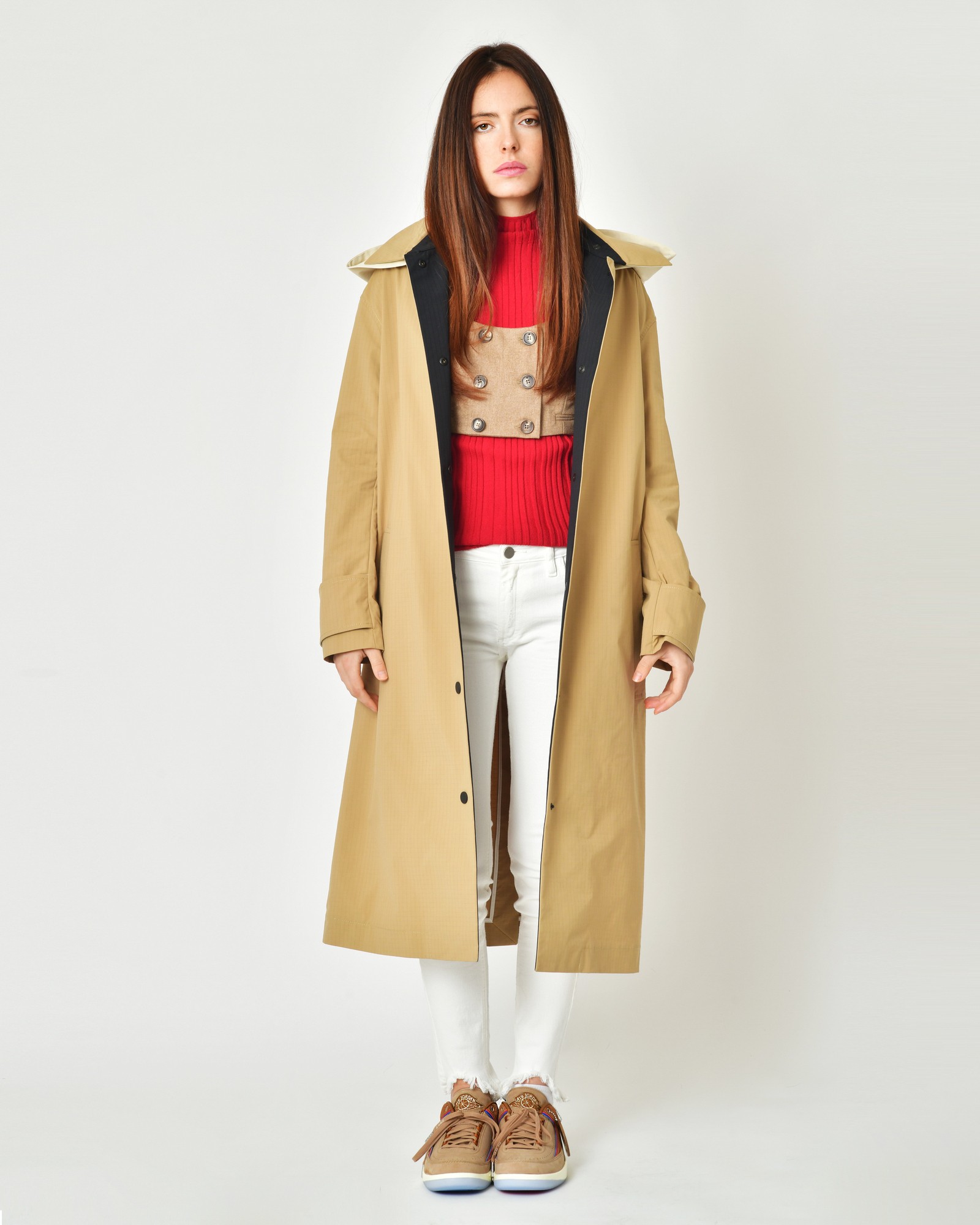 Gilet en laine vierge beige à double boutonnage, arborant un dos à rayures et des pattes réglables pour une coupe impeccable. Un choix raffiné qui allie style et confort, ajoutant une touche élégante à votre garde-robe.