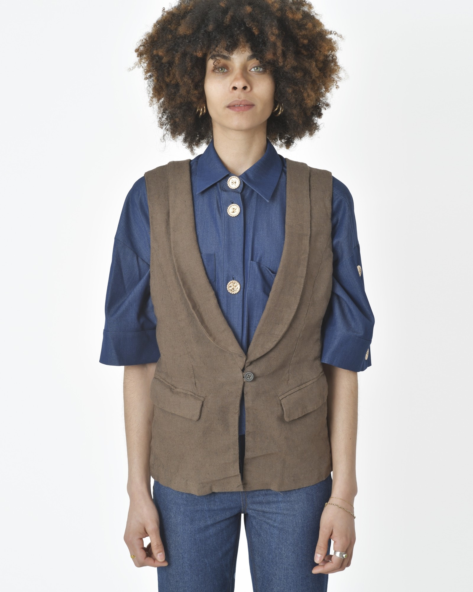 Gilet sans manches marron 120% Lino