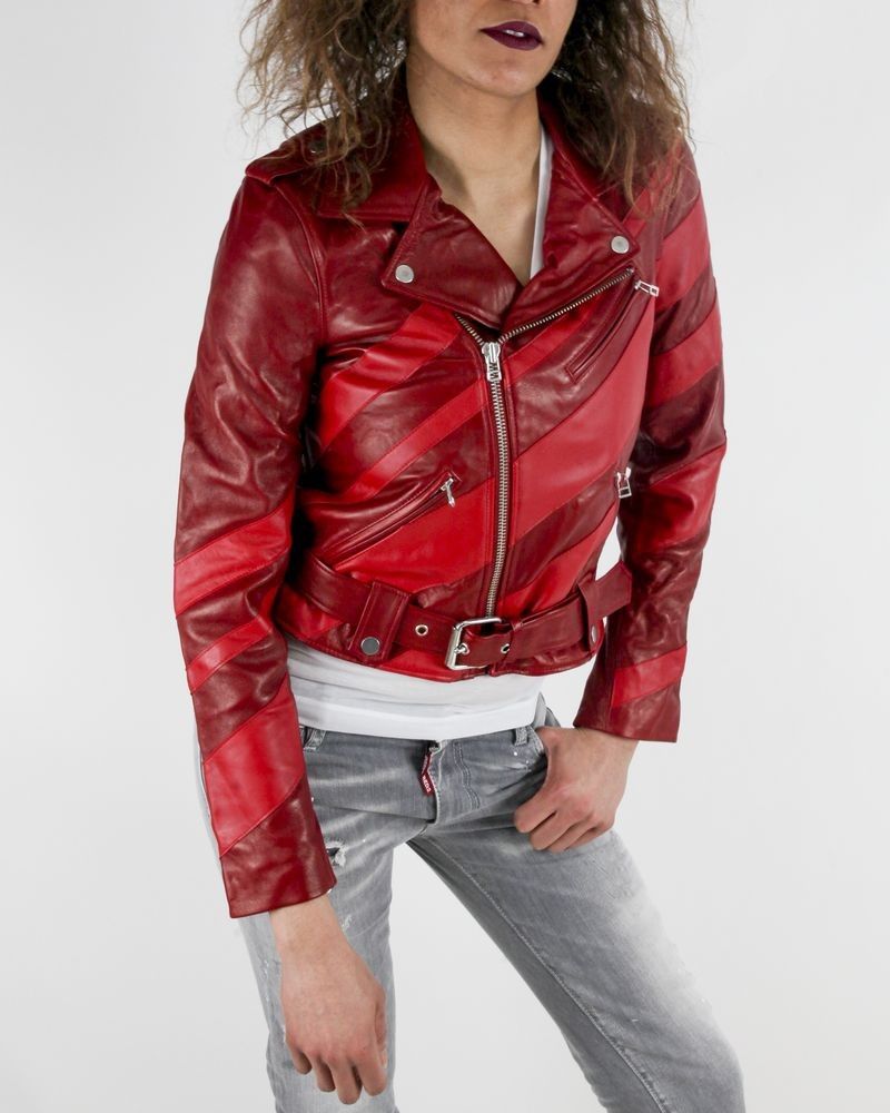 Perfecto en cuir bordeaux à bandes rouges Each Other