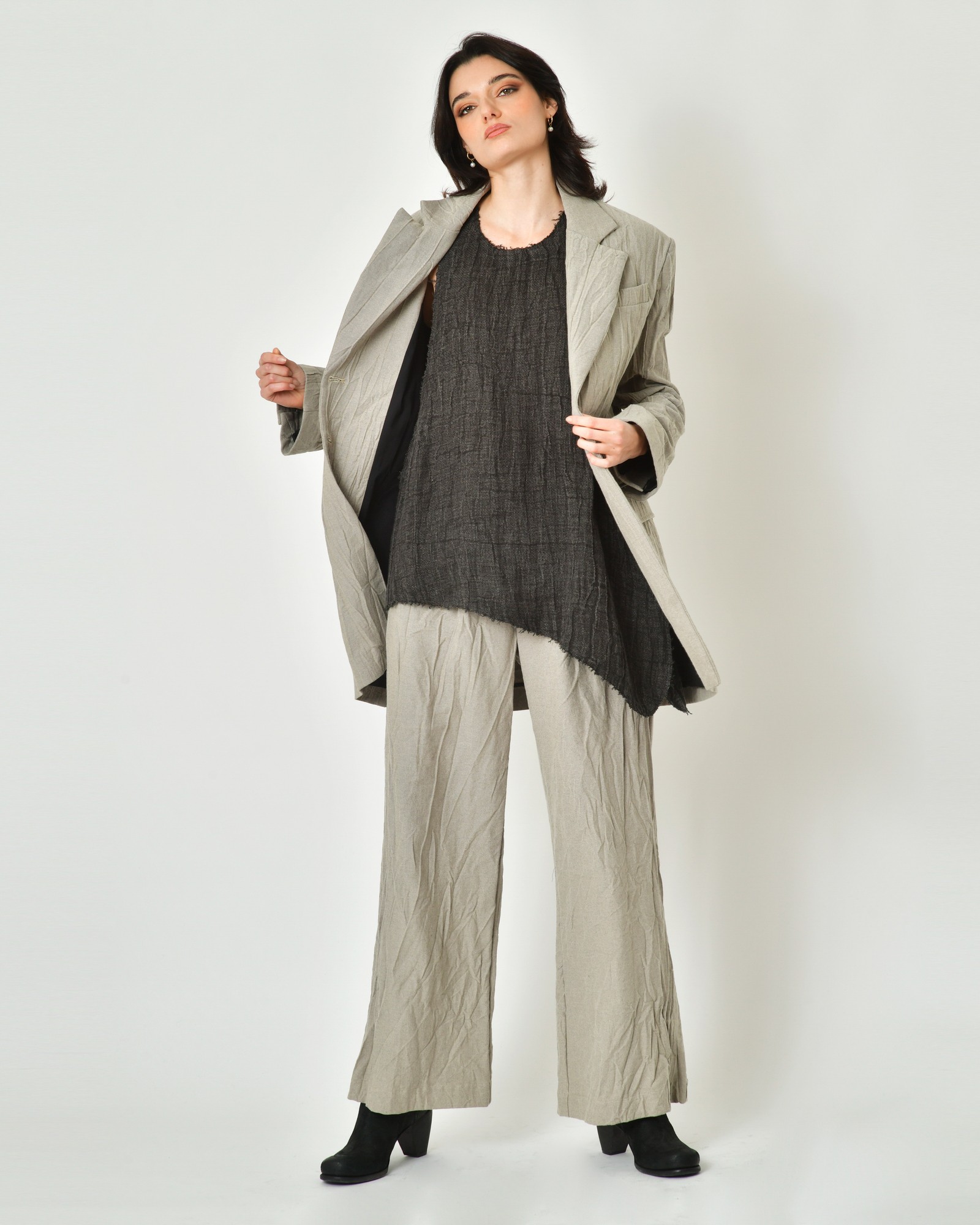 Veste en coton effet froissé taupe Nostra Santissima