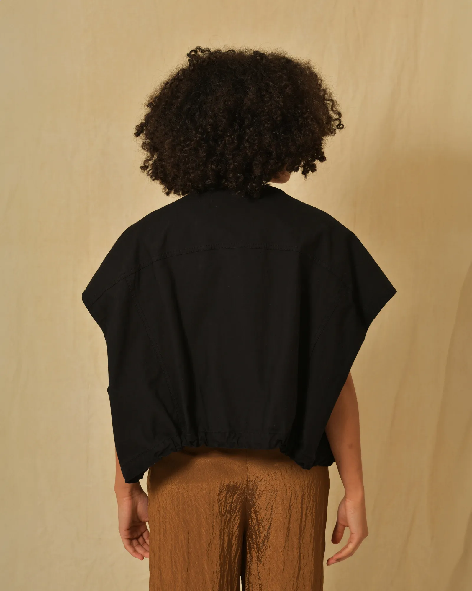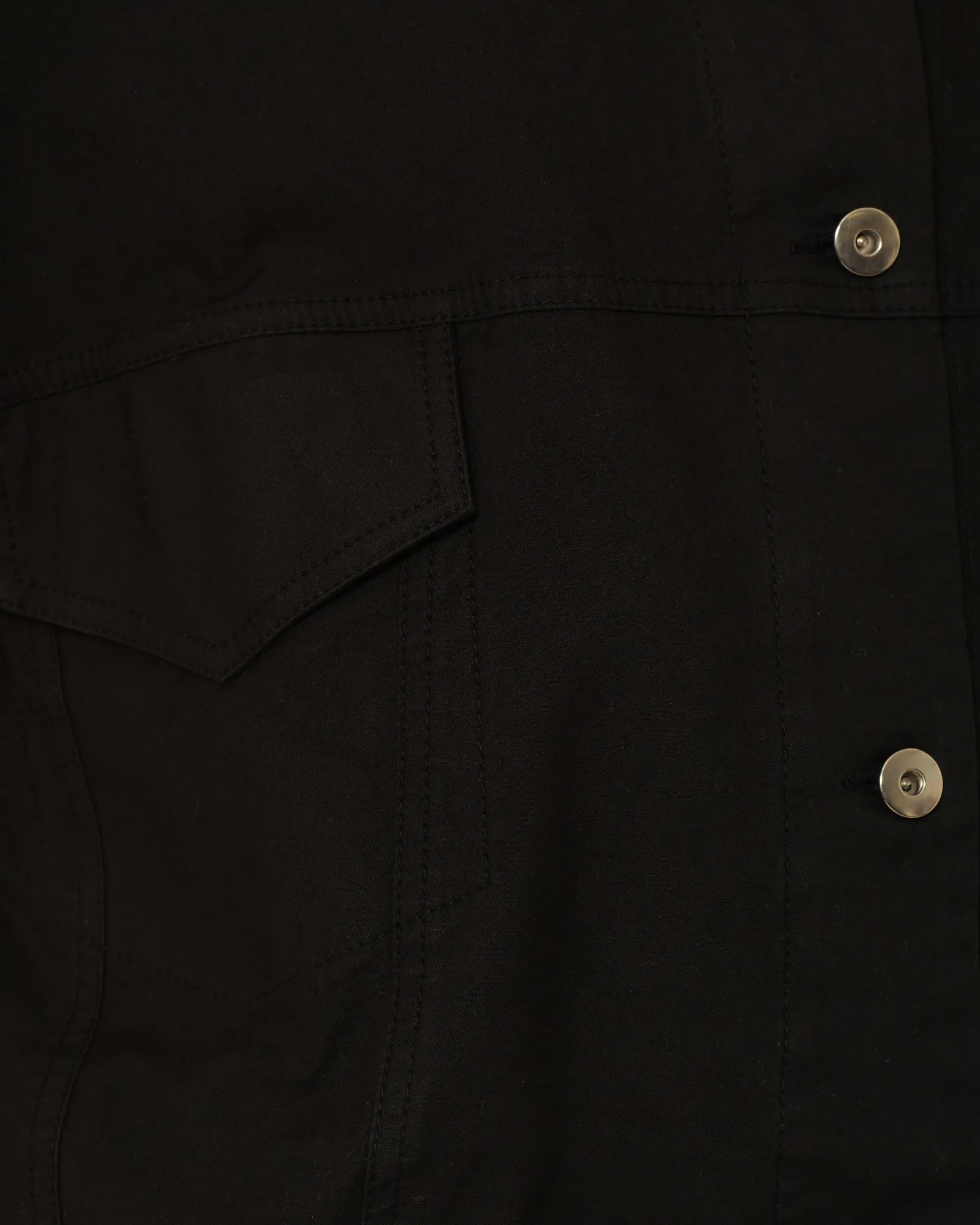 Cette veste en jean noir, à la coupe large flatteuse de la marque Hache, se distingue par ses liens ajustables au niveau de l'ourlet, permettant de structurer la silhouette selon vos envies. Sa découpe au niveau des bras est soigneusement travaillée pour un effet ultra élégant et moderne, apportant une touche sophistiquée et audacieuse à vos looks.