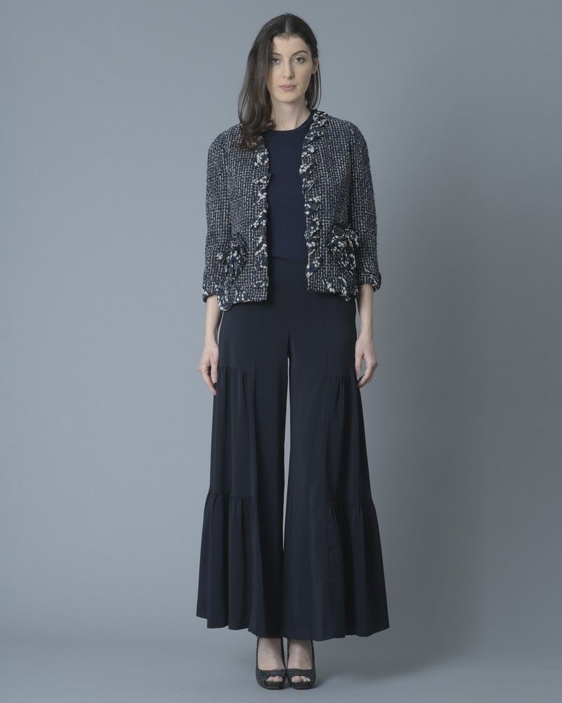 Pantalon bleu large à volants Stefano Mortari