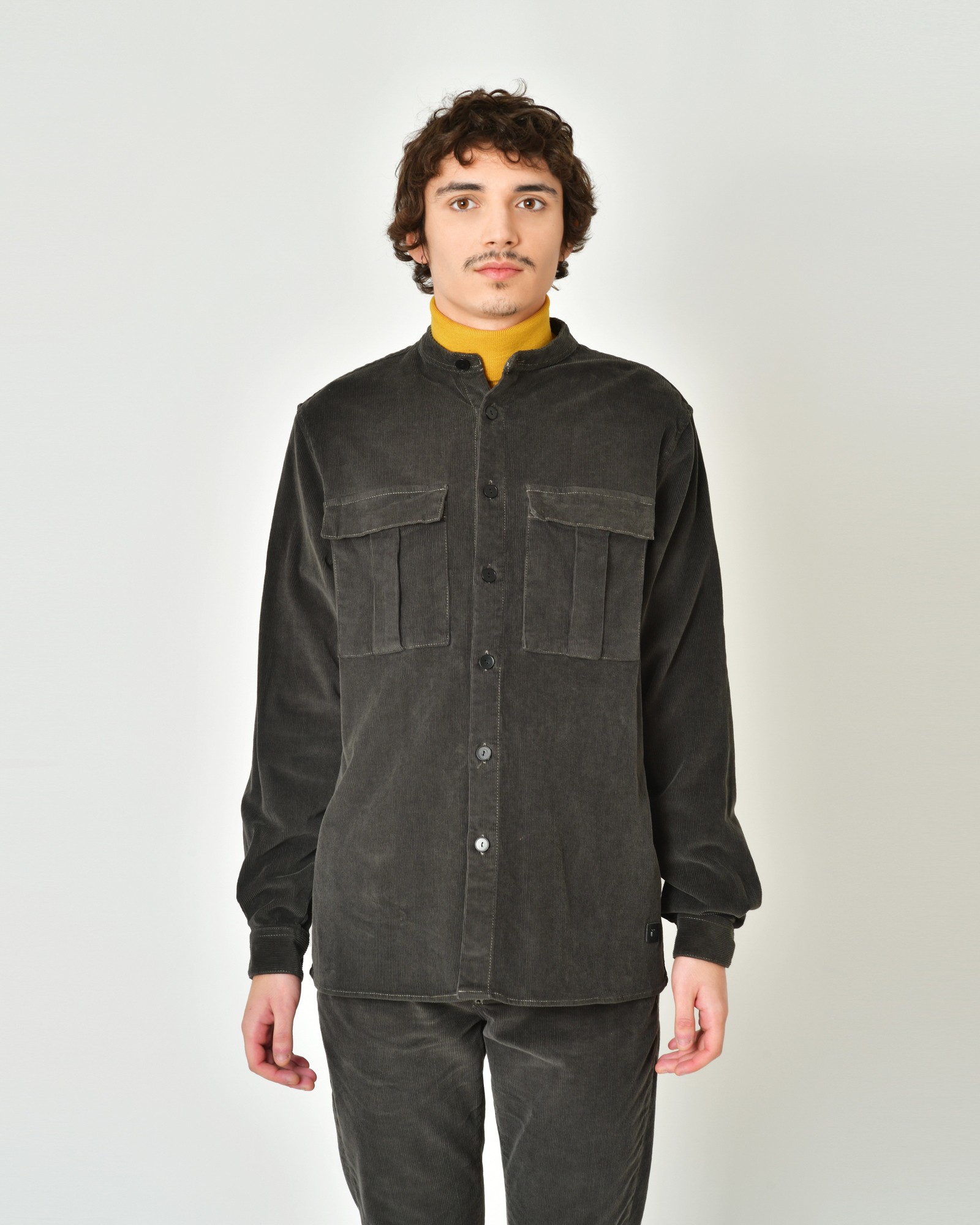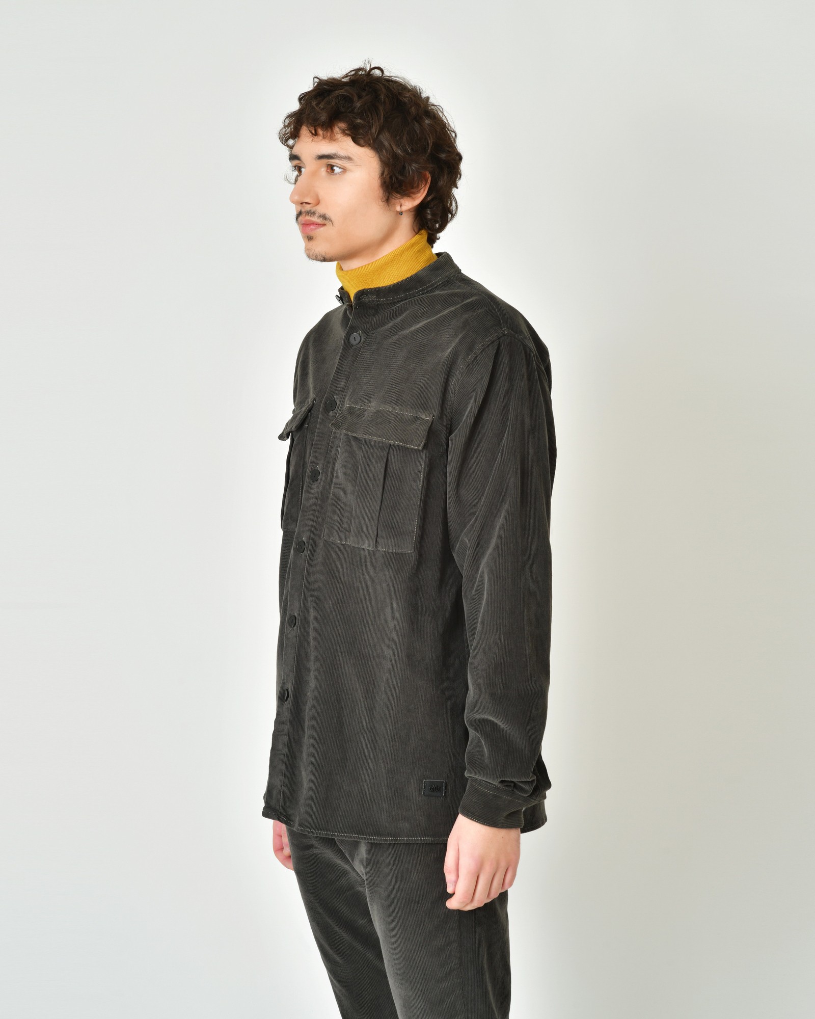 Surchemise en coton côtelée à col mao Ixos