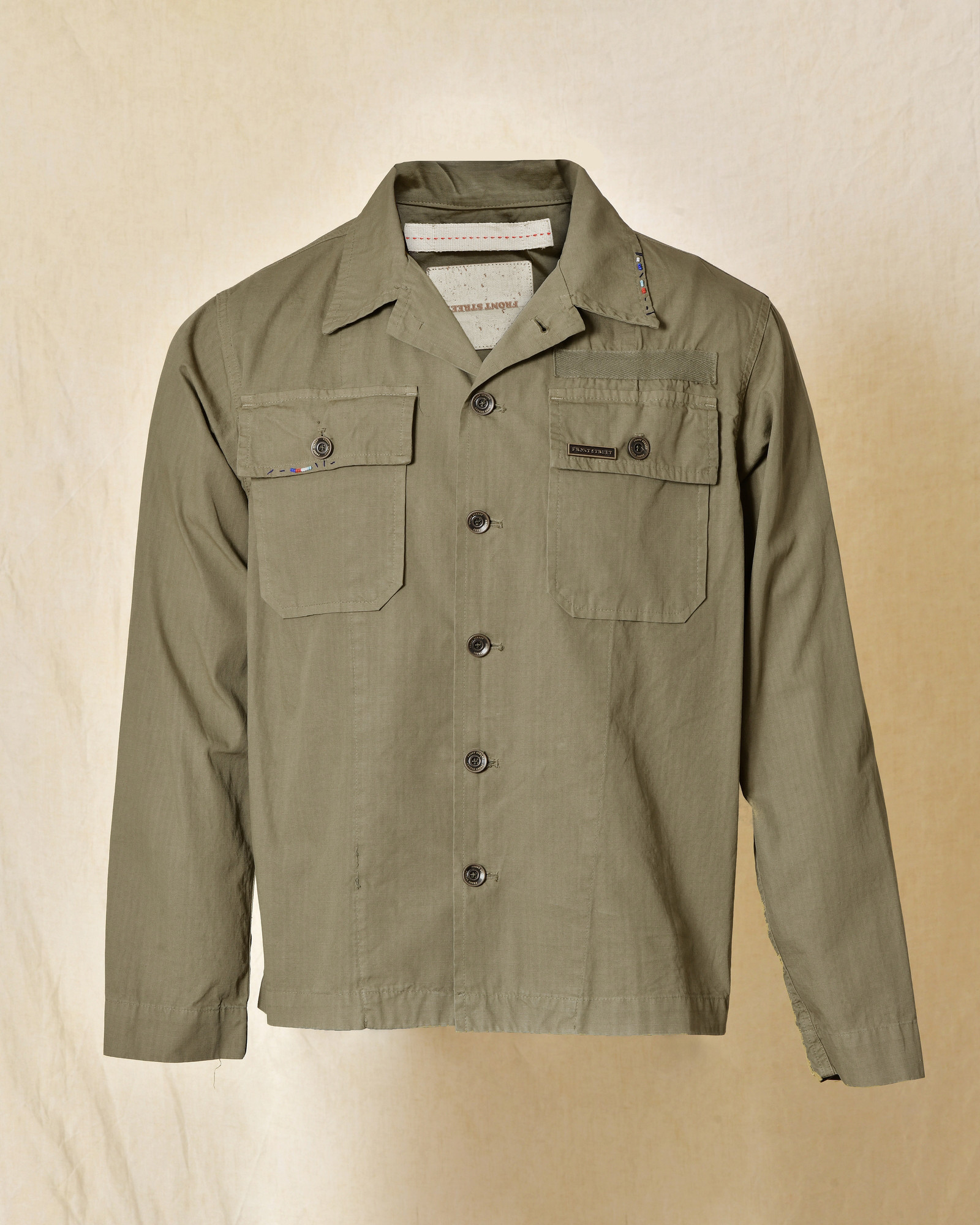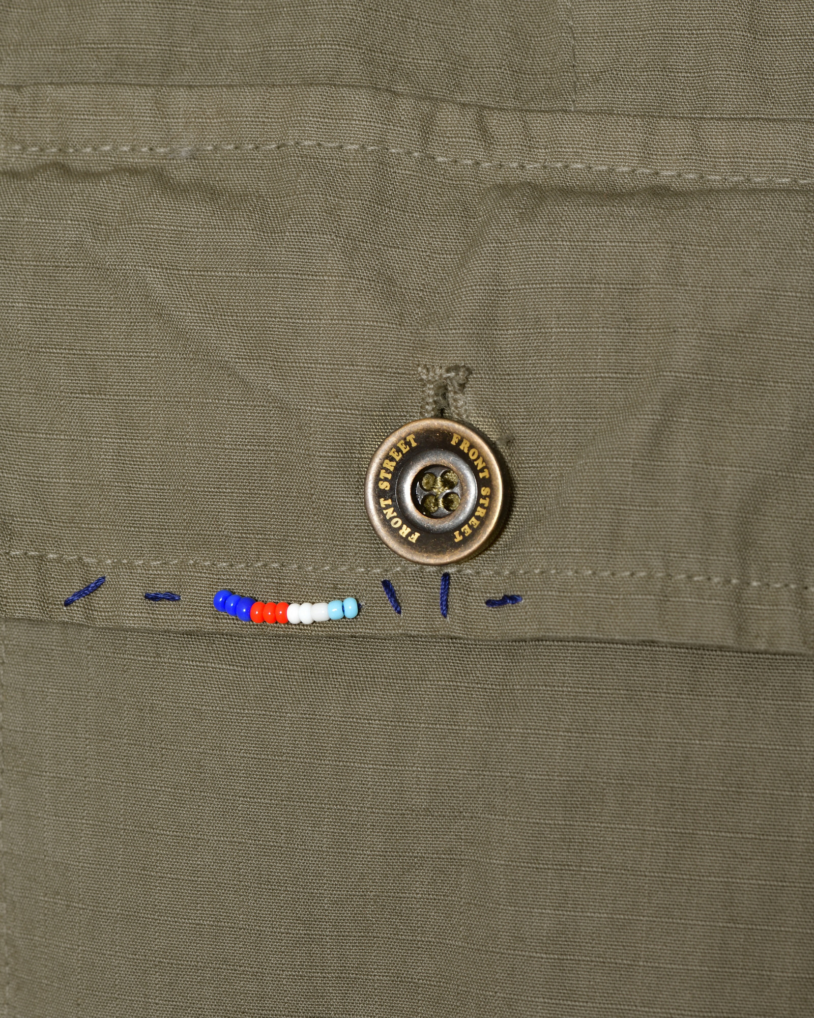 Veste kaki à perles multicolores brodées Front Street