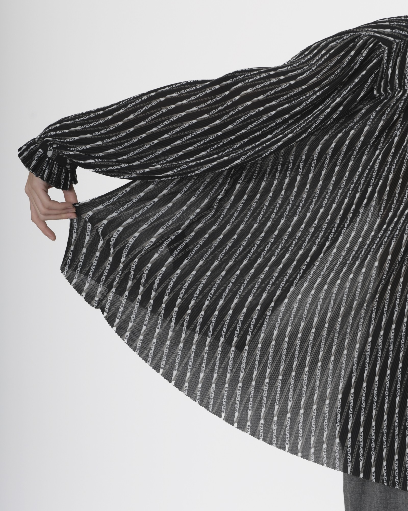 Ce top Balenciaga est une pièce rehaussée par ses épaules tombantes exagérées, à l'ourlet évasé et au col à volant noué rétro. Il est confectionné en tissu légèrement transparent plissé à imprimé logo de la maison.