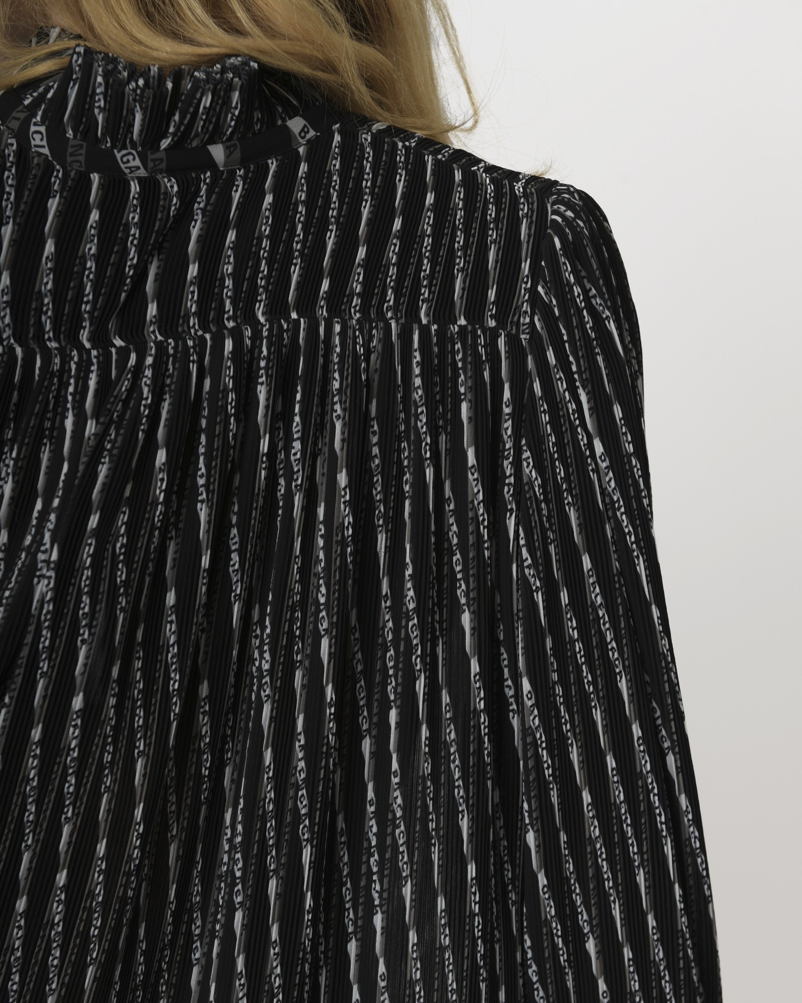 Chemisier plissé à logo et à col volanté noué Balenciaga