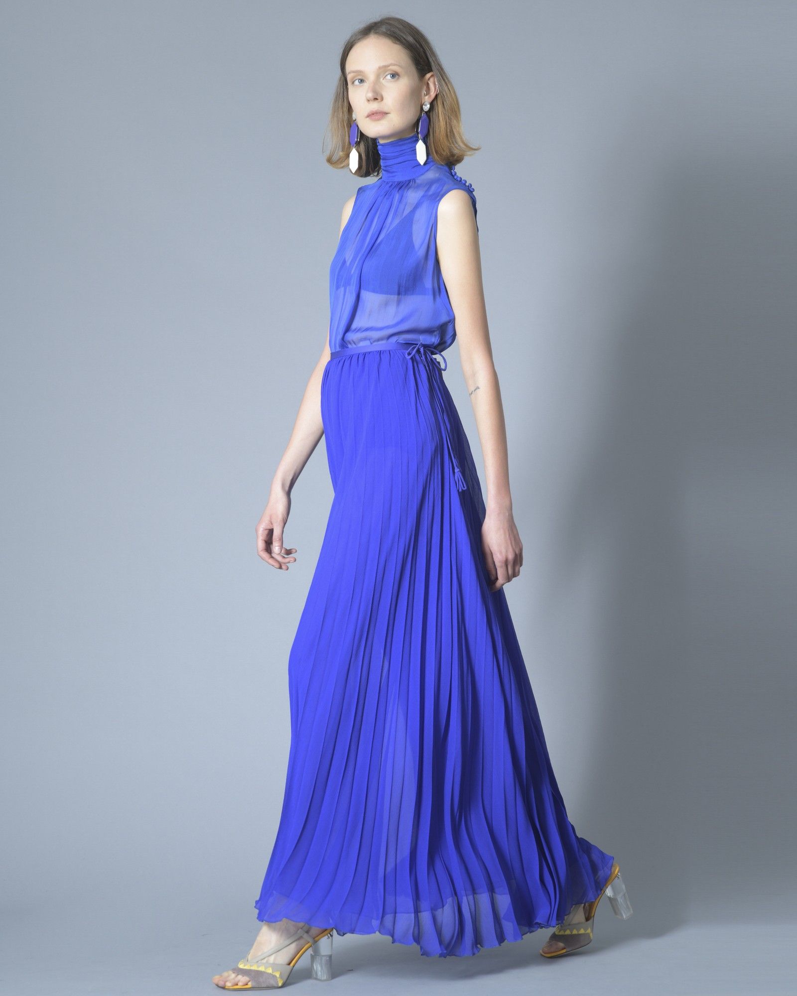 Le mannequin mesure 1m80 et porte une taille 34.