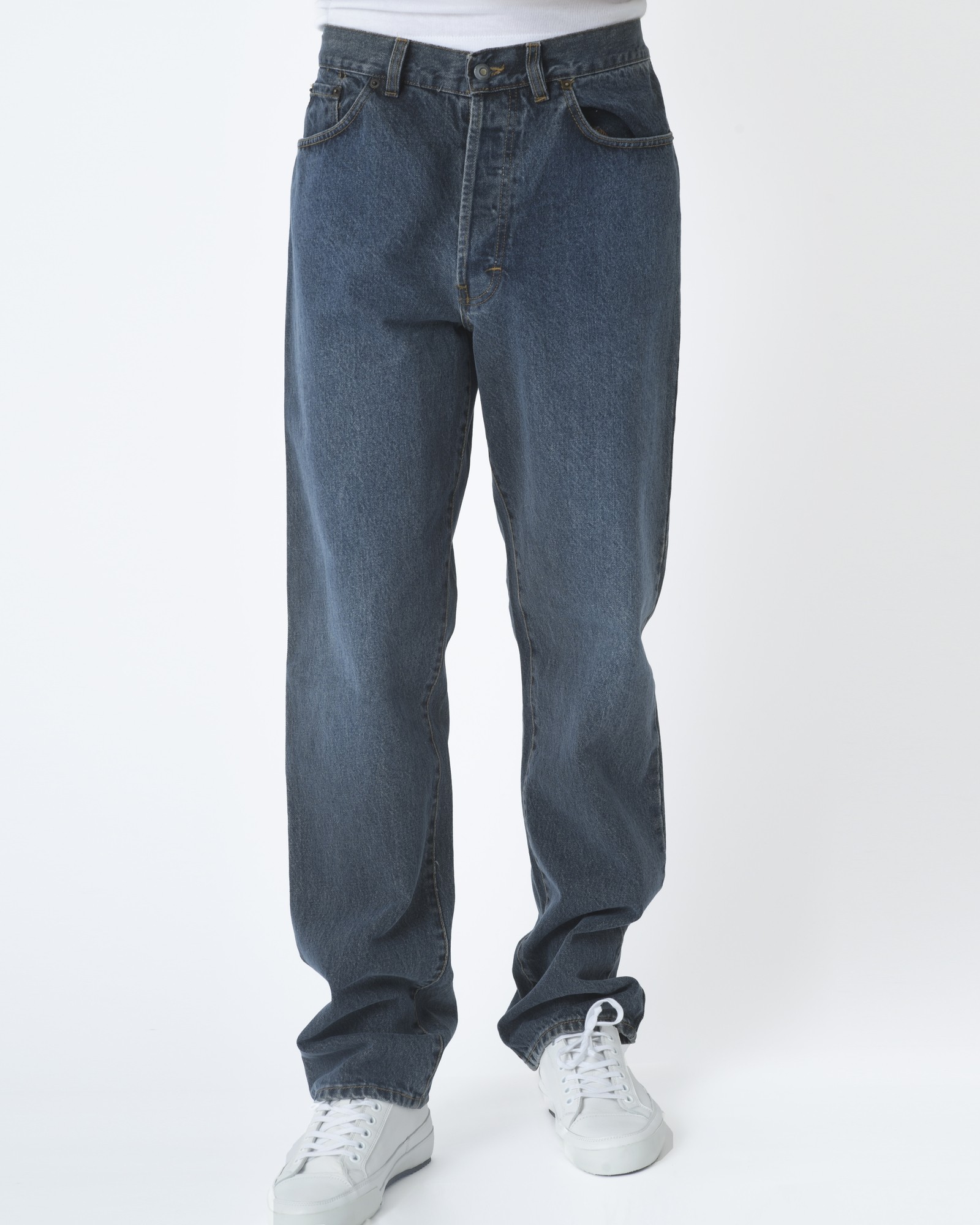 Jean en coton APV. Détails: Jean basic, coupe droite, système de fermeture standard milieu devant : fermeture à glissière/boutonnage, double poches plaquées dos.