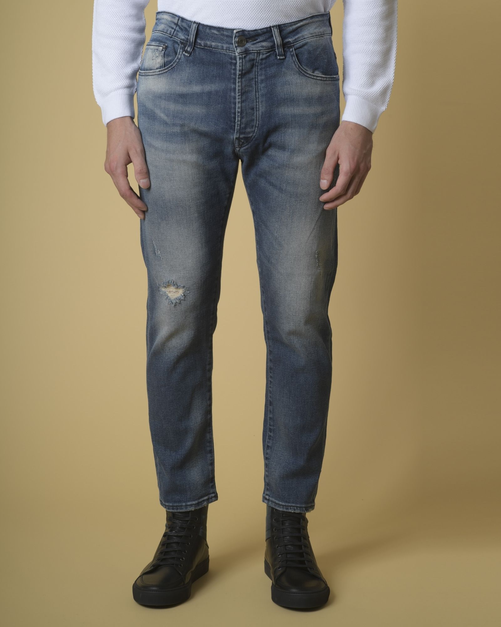 Pantalon denim large avec boutons dorés latéraux Edward...
