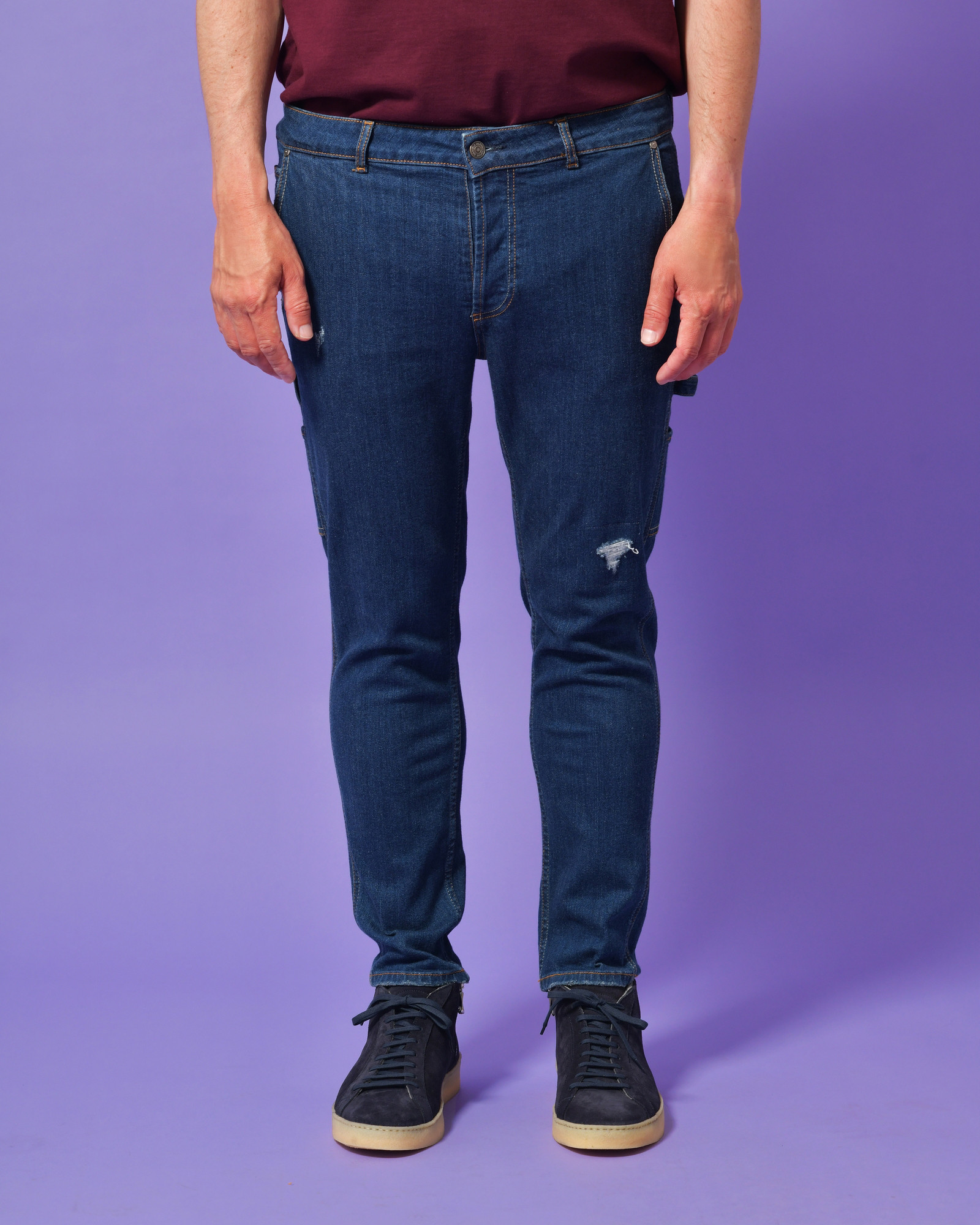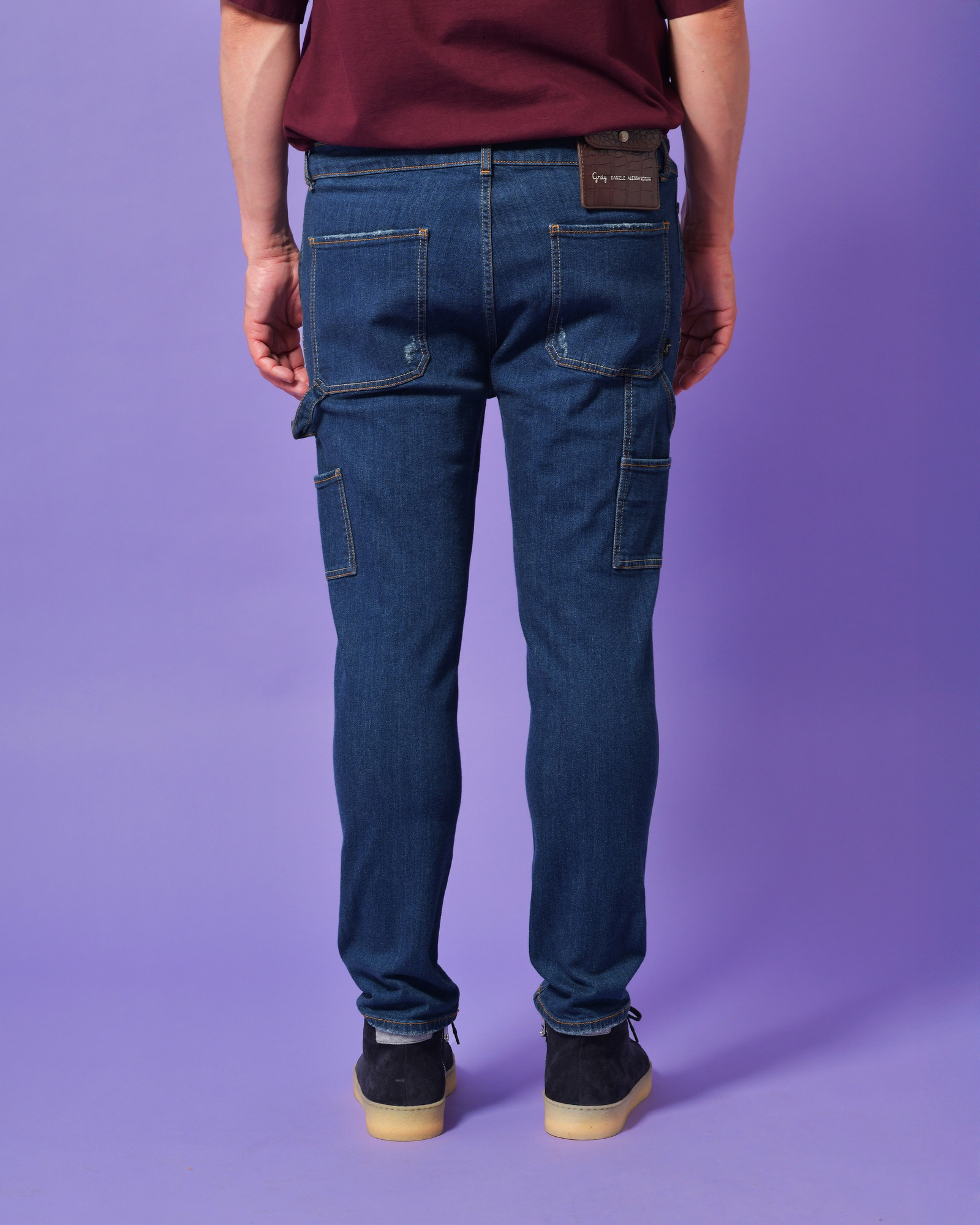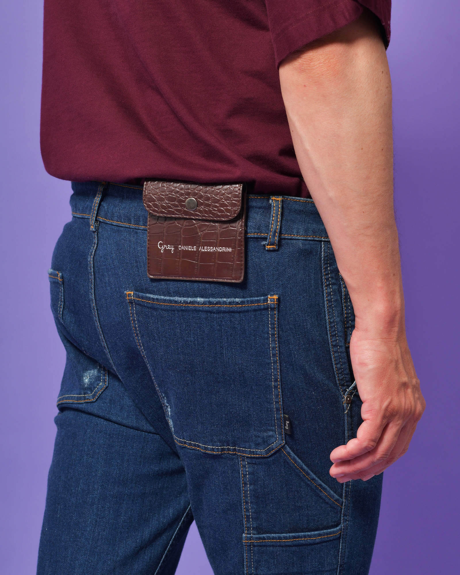 Jean cargo signé Daniele Alessandrini, au style utilitaire et tendance. Il est doté de quatre poches sur le devant et de deux poches à l’arrière, offrant un look structuré et fonctionnel. À l’arrière droit, un détail façon portefeuille ajoute une touche originale et distinctive. Confectionné dans une coupe moderne, ce jean allie confort, praticité et caractère, parfait pour un look urbain affirmé.