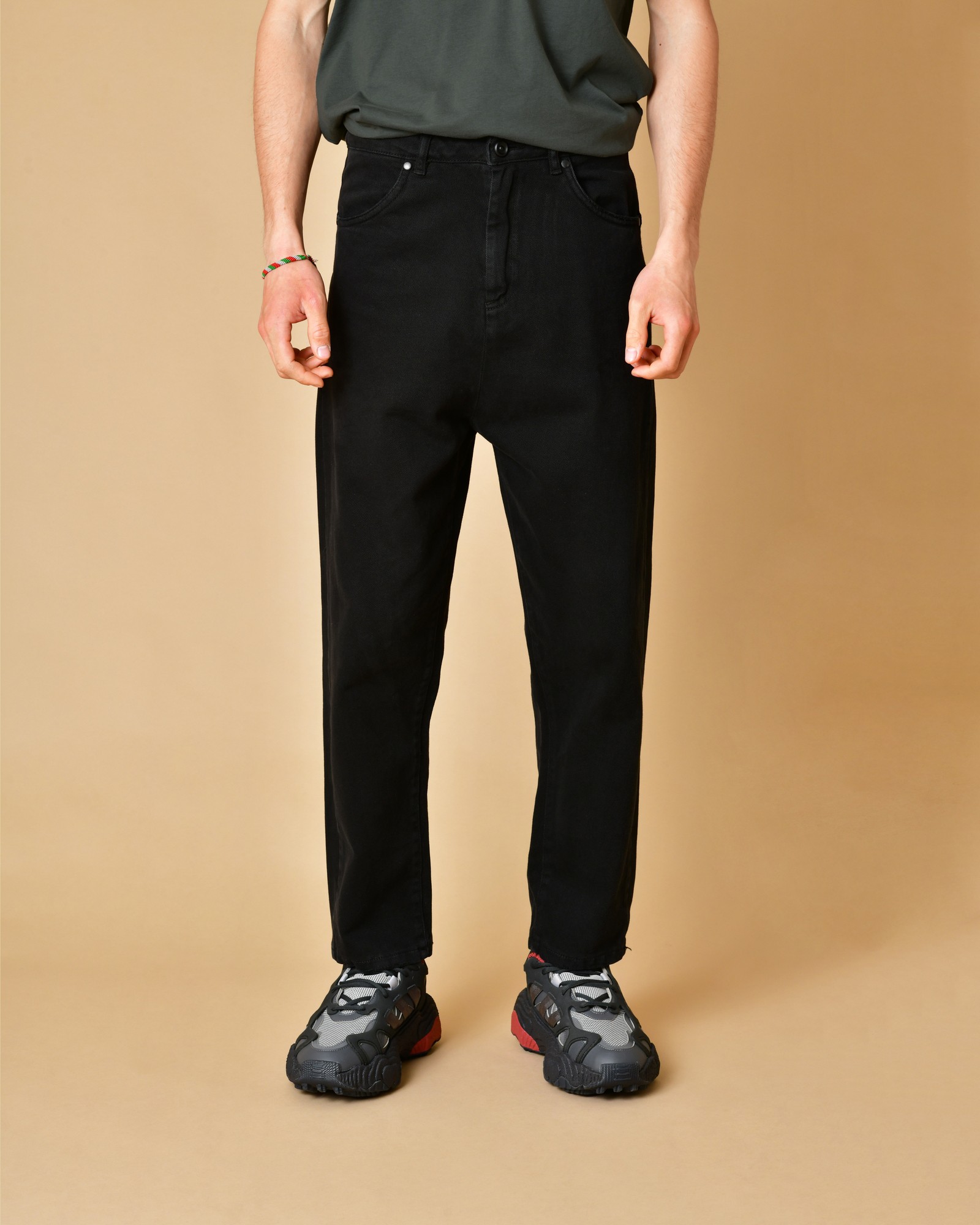 Jean noir en coton à coupe large Nostra Santissima