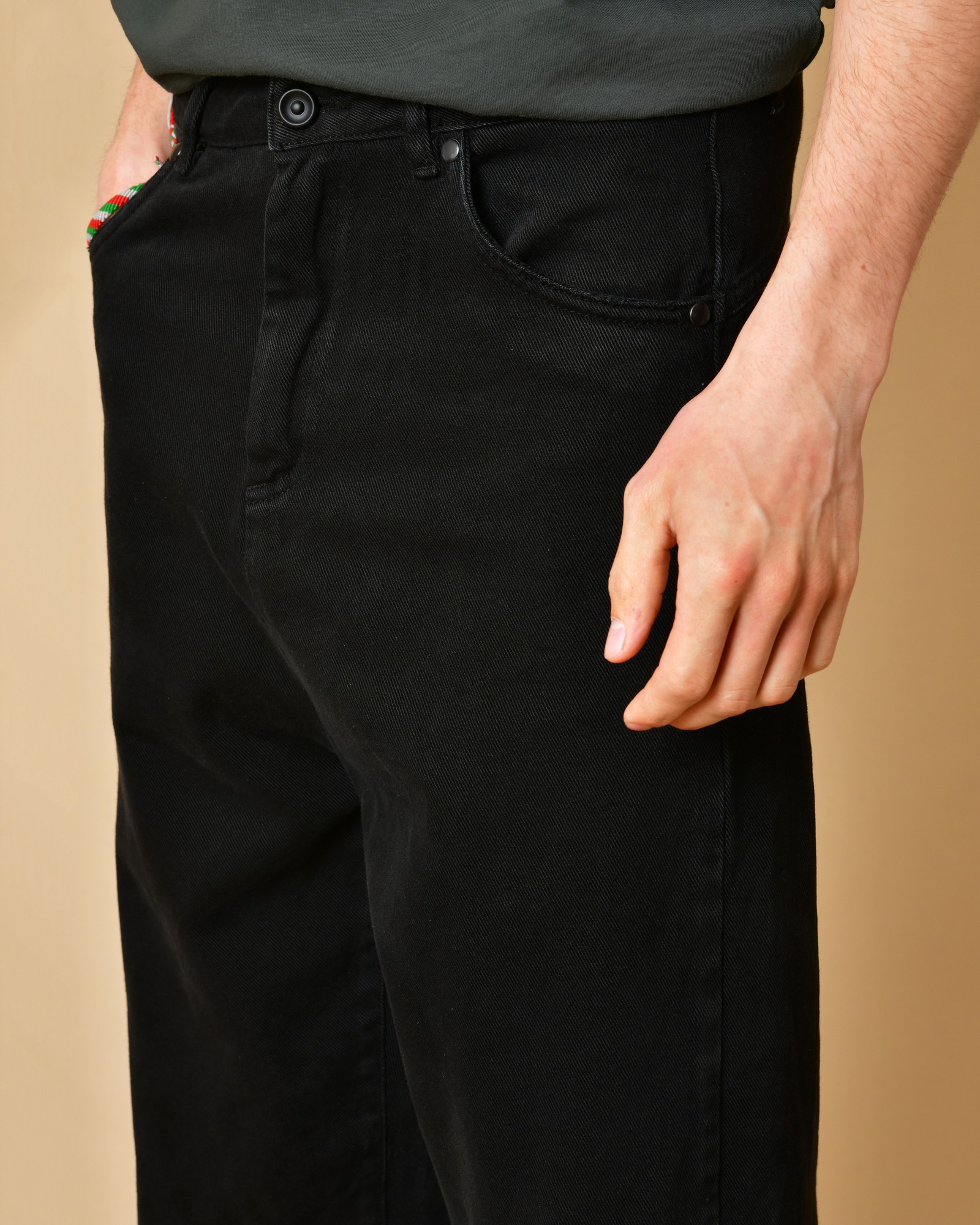 Jean denim délavé noir détail bordure de poche orange 3D