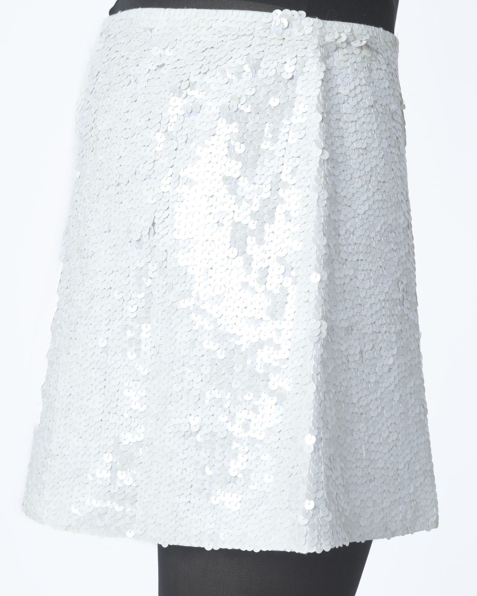 Jupe courte à sequins Parosh. Détails: longueur mi cuisse, incrustation sequins sur l’intégralité du produit, système de fermeture standard à glissière côté gauche.