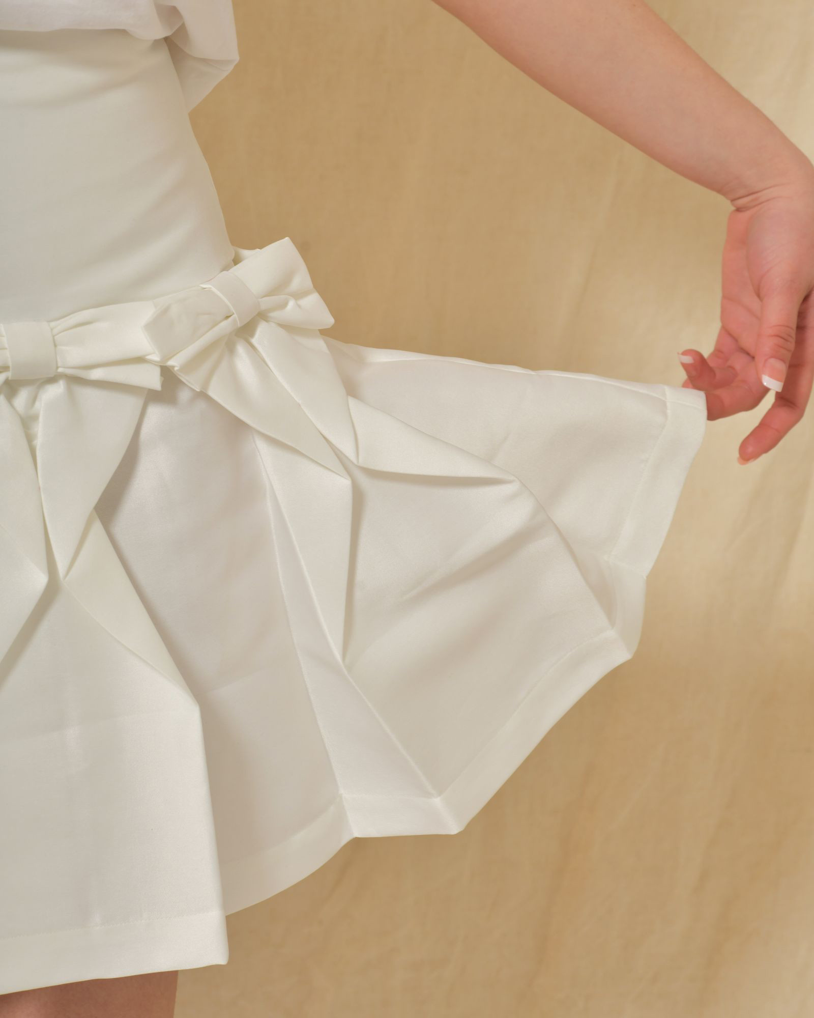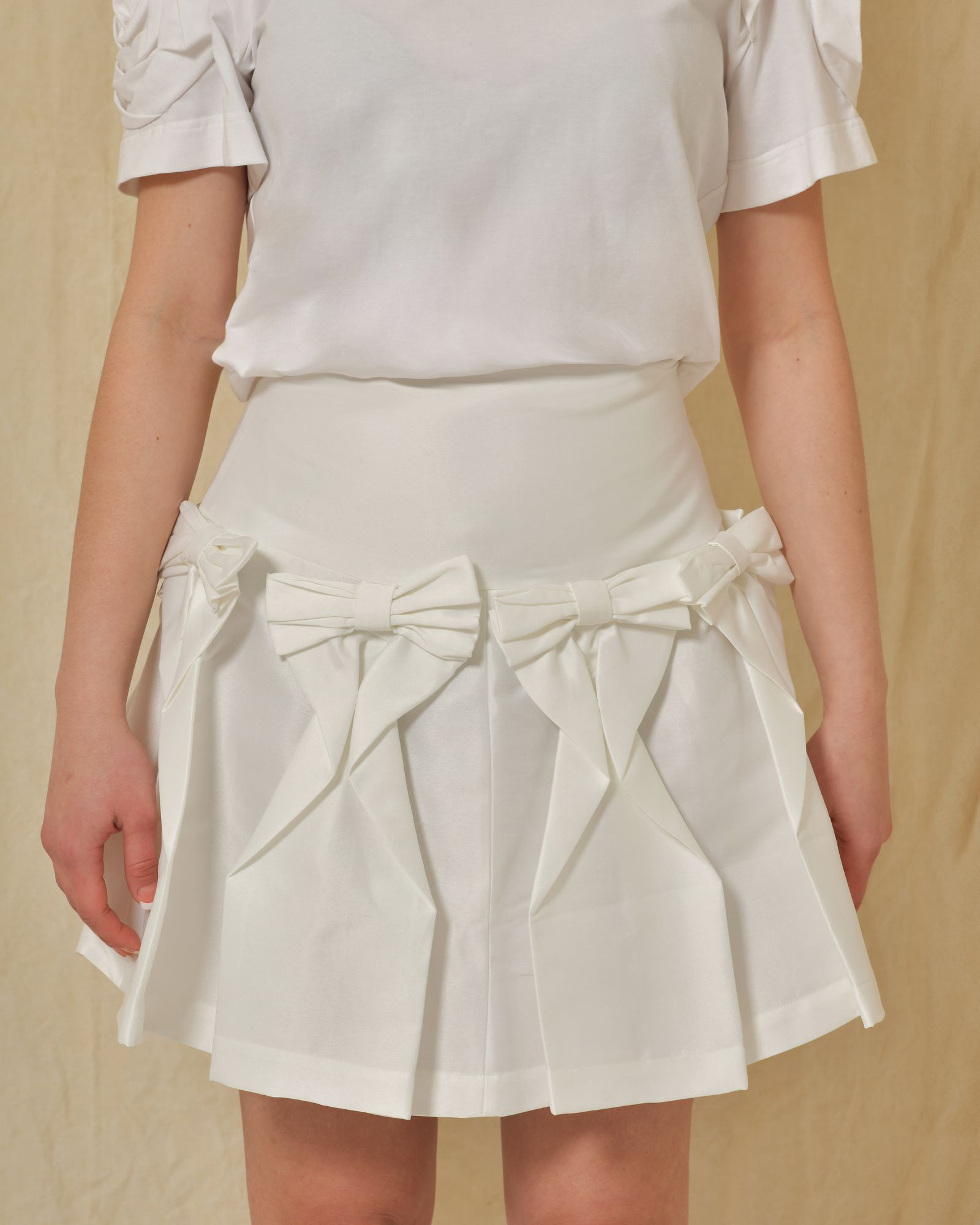 Jupe en soie mélangée à plis Edward Achour, ornée de plis flatteurs sublimés par de jolis nœuds sur chaque pli, créant un élégant effet origami.