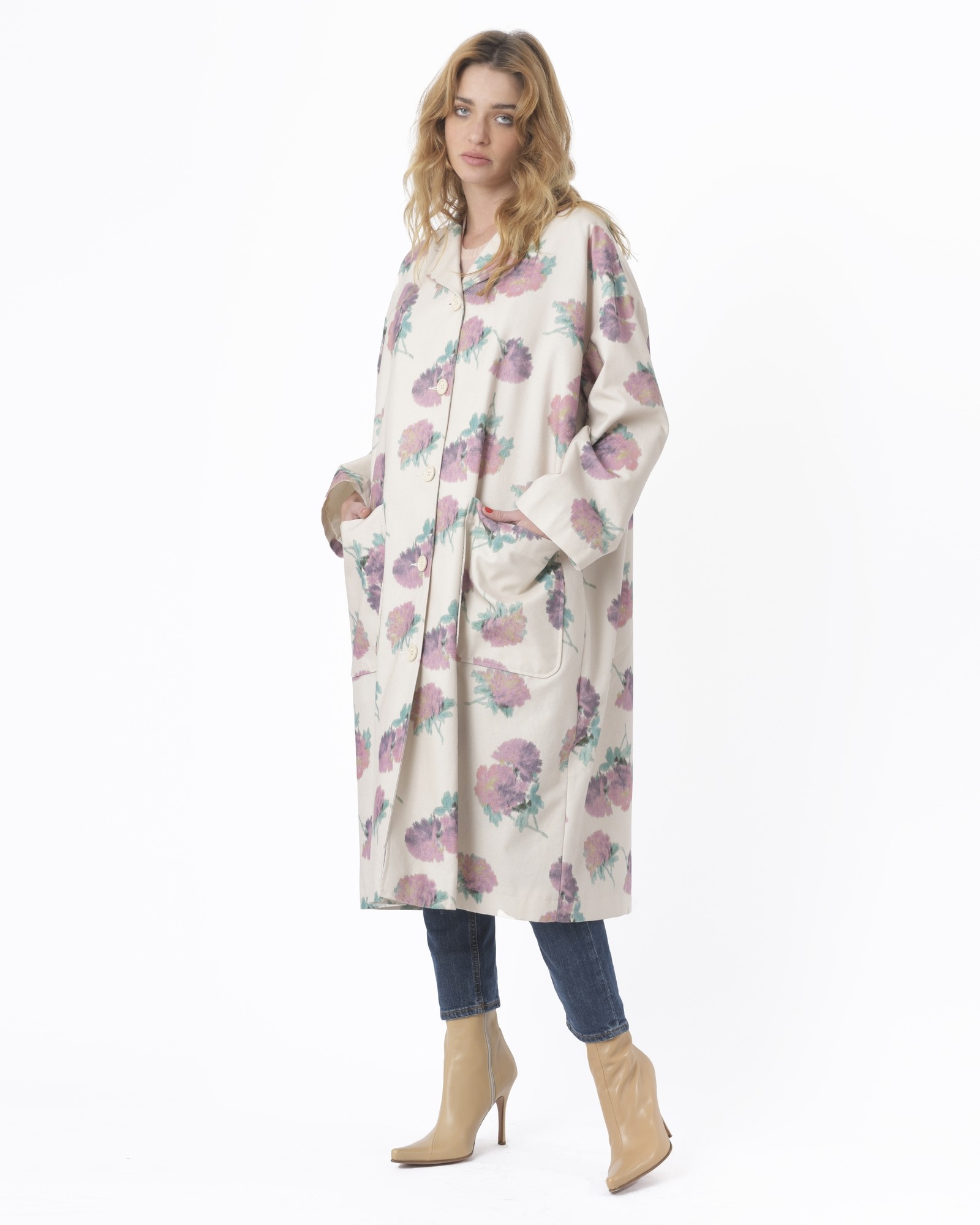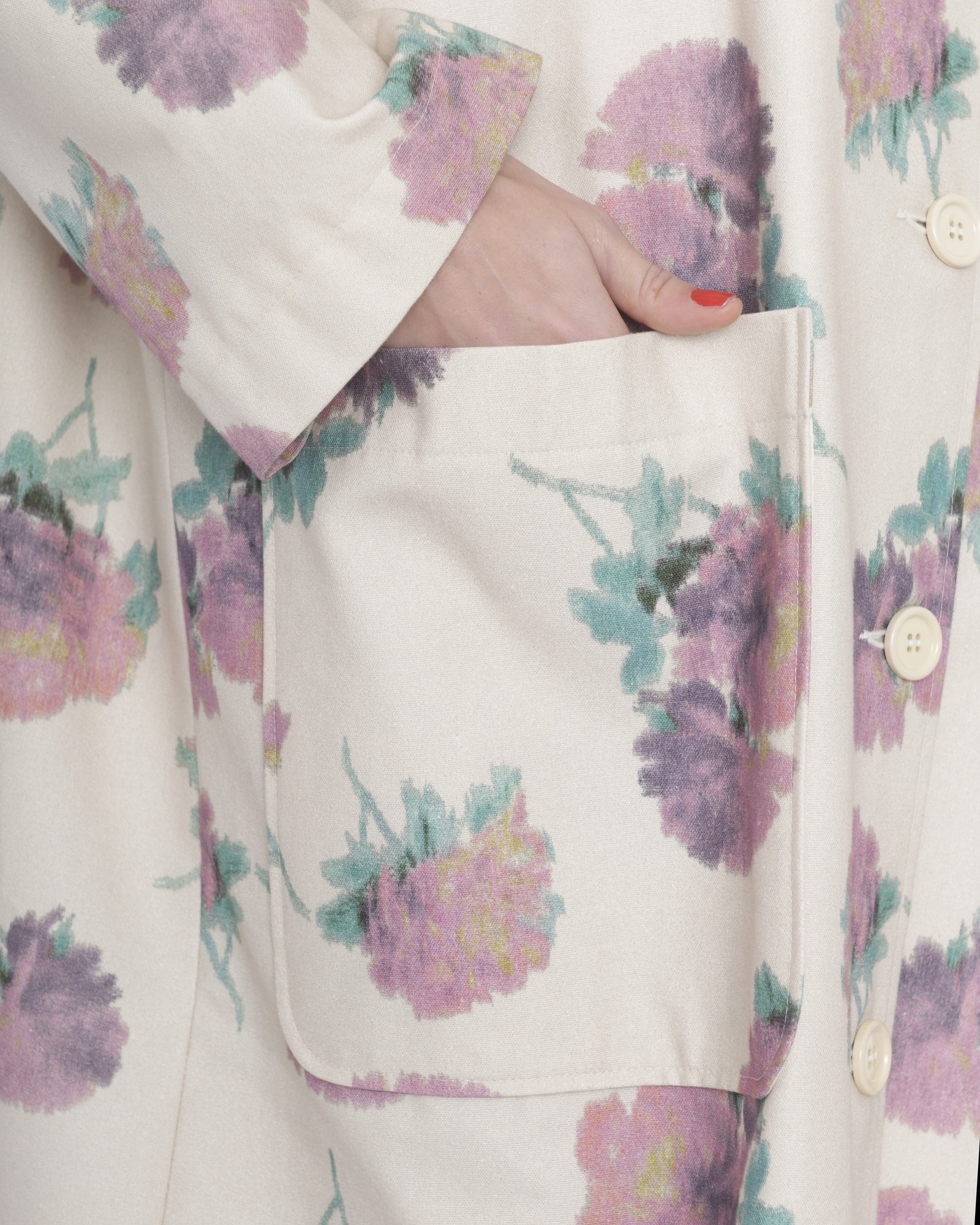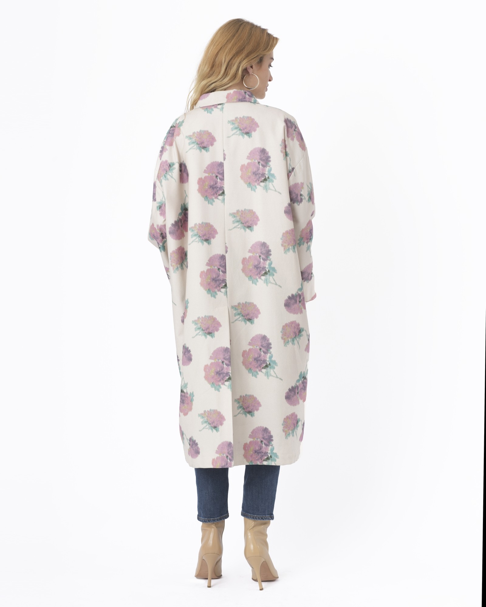 Manteau fleuris AVN. Détails: Manteau fleuris AVN, longueur genoux, col tailleur, poches plaquées devant, système de fermeture avec patte de boutonnage milieu devant, fente d’aisance dos.