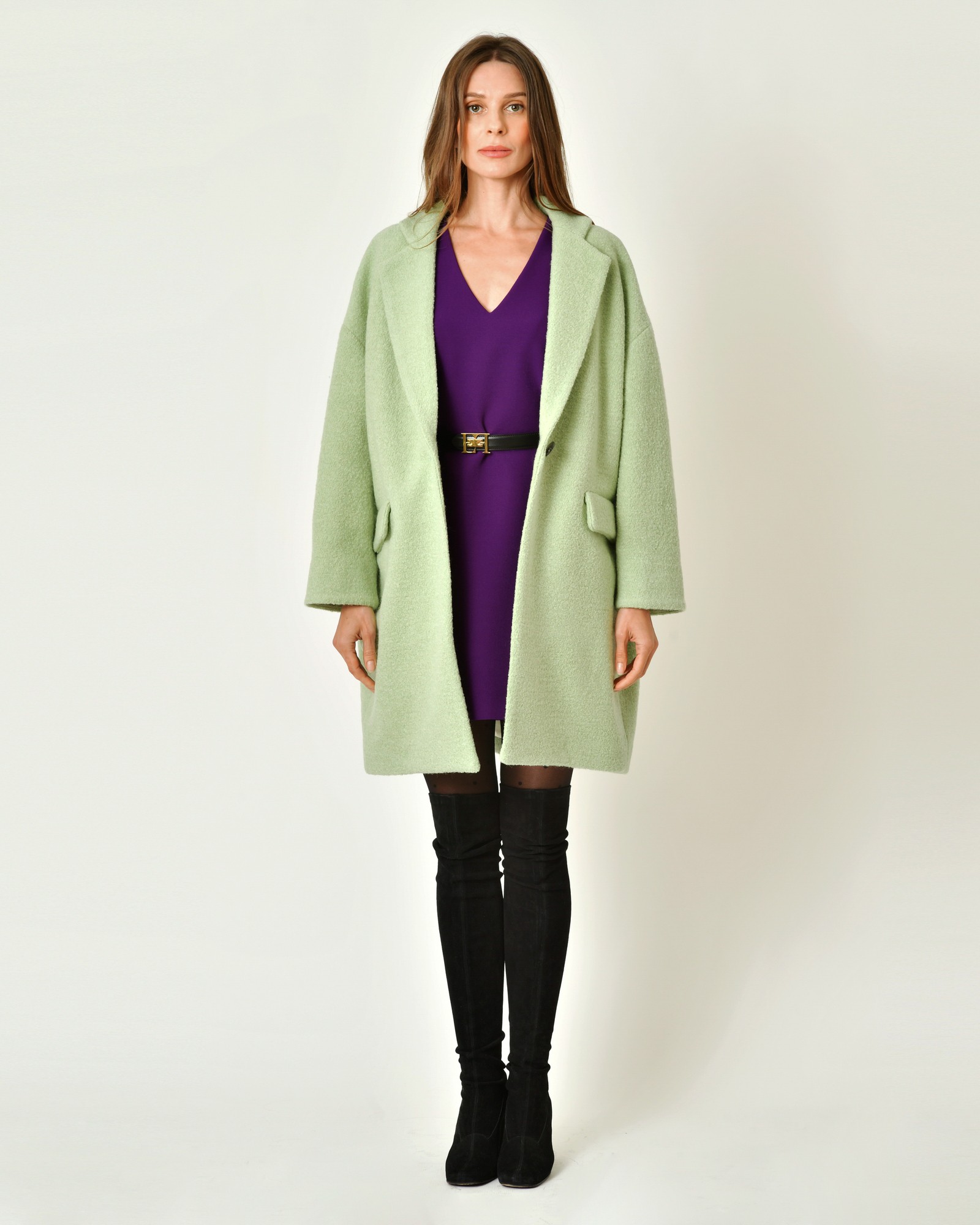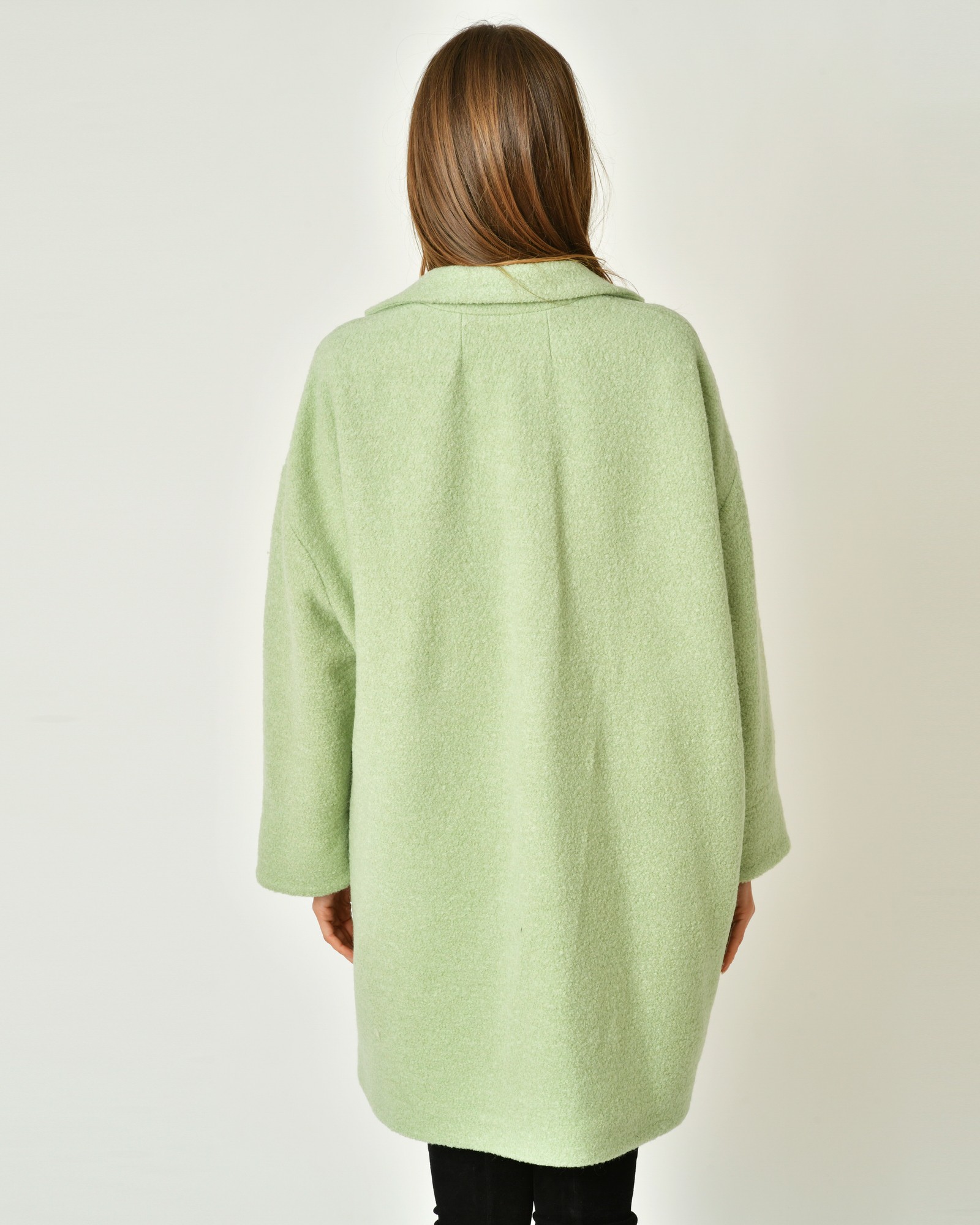 Ce manteau en laine et coton incarne le style décontracté avec une coupe loose et des manches tombantes. L'élégance simple de ce manteau est accentuée par un bouton et deux poches pratiques. Parfait pour compléter votre look et vous accompagner avec style lors des journées fraîches.