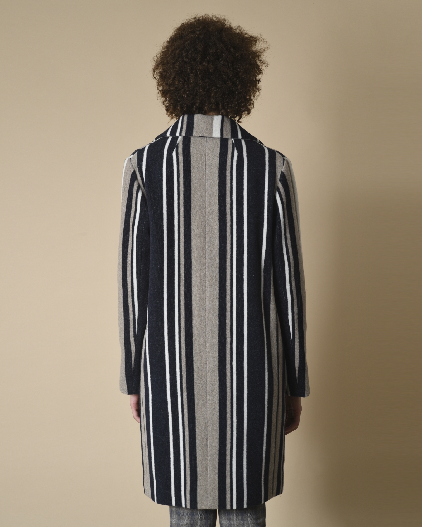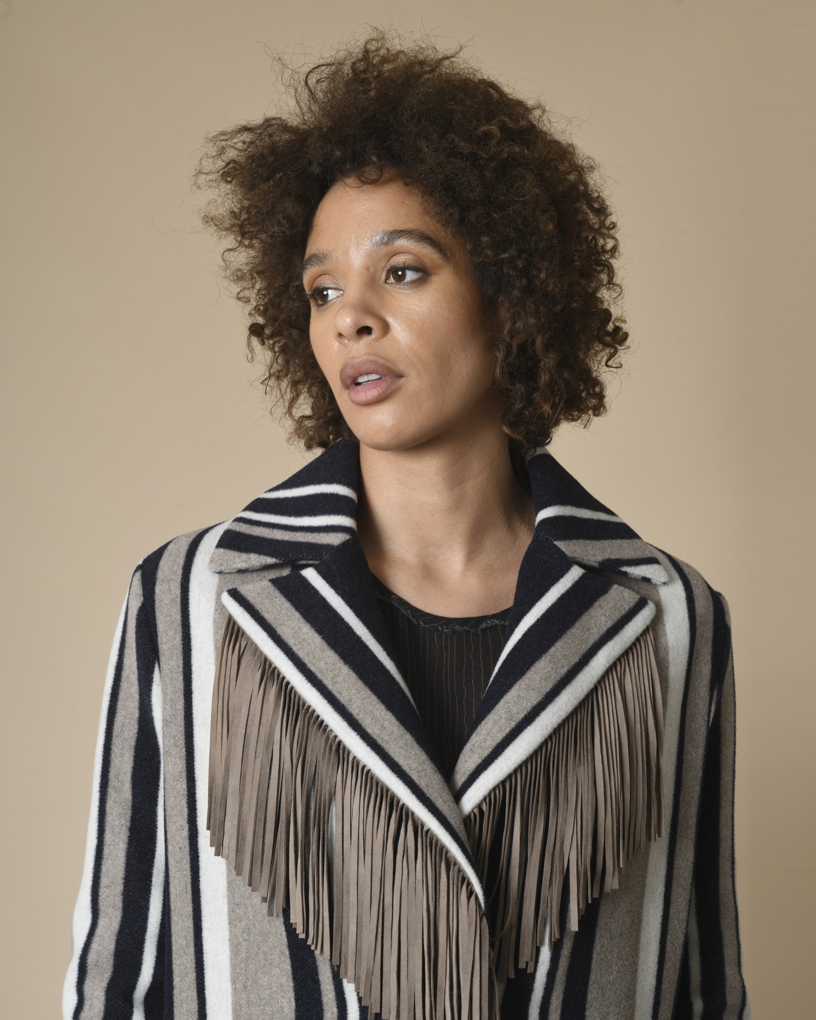 Manteau en laine mélangé à rayures et franges en daim Mouche