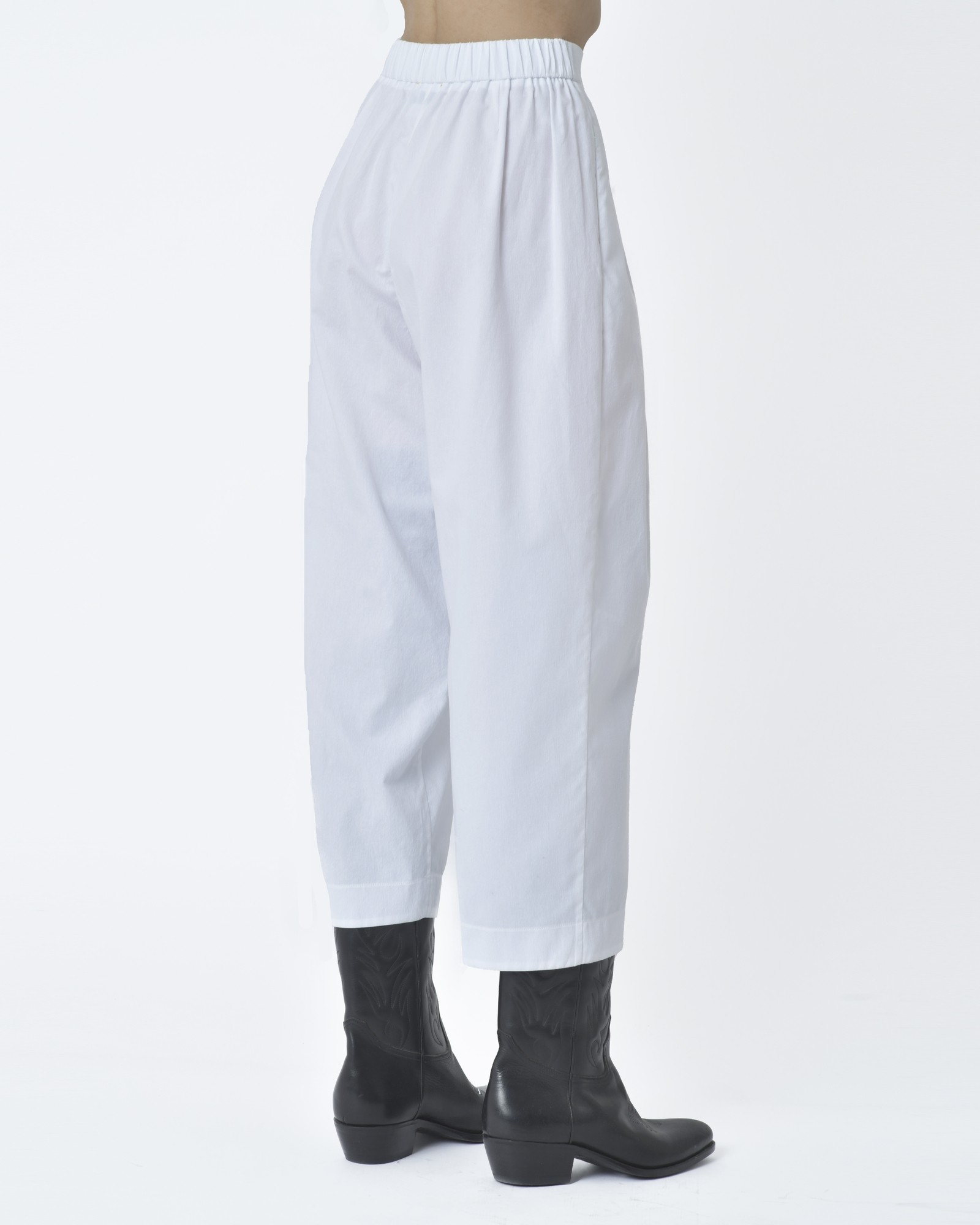 Pantalon blanc à pinces 3/4 Forte Forte. Détails: Pantalon blanc à pinces ouvertes, poches invisibles sur le devant, élastiques à la taille dos, passants à la taille, fermeture éclaire invisible et bouton milieu devant.
