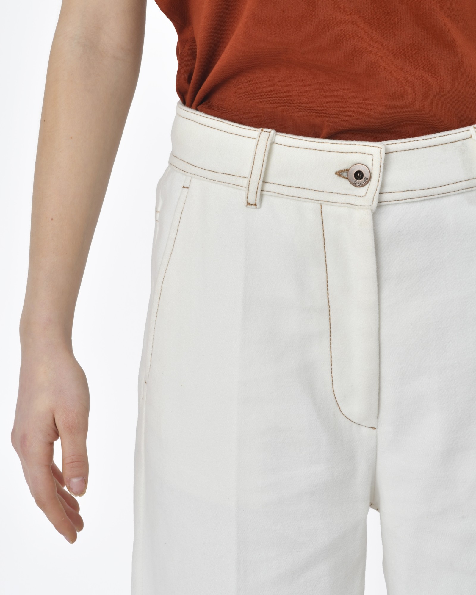 Pantalon blanc Brag-Wette: Détails: Pantalon blanc Brag-Wette, pantalon taille haute blanc, poches italiennes sur le devant, type jean sur le dos, passants à la ceinture, fermeture éclair et bouton milieu devant.