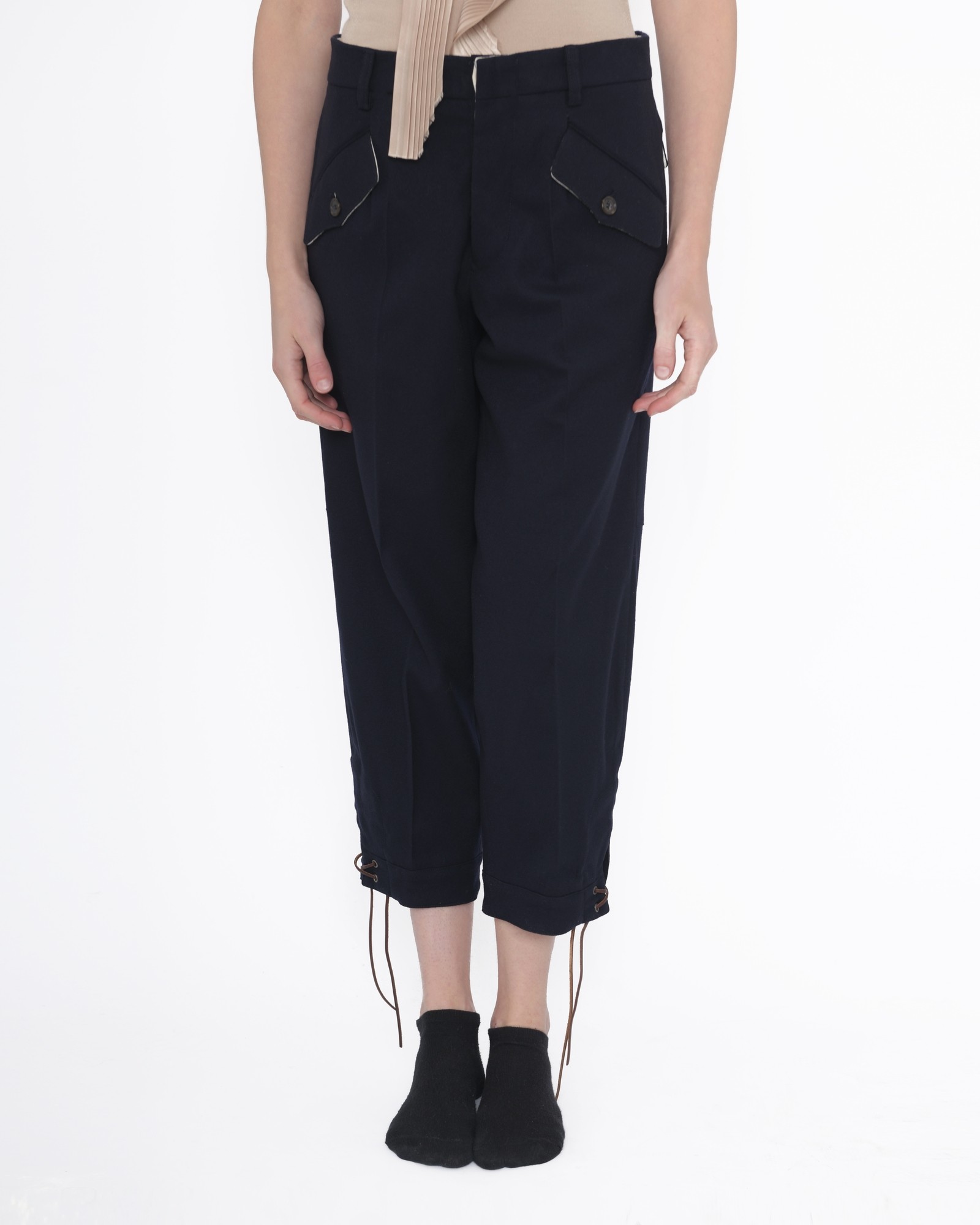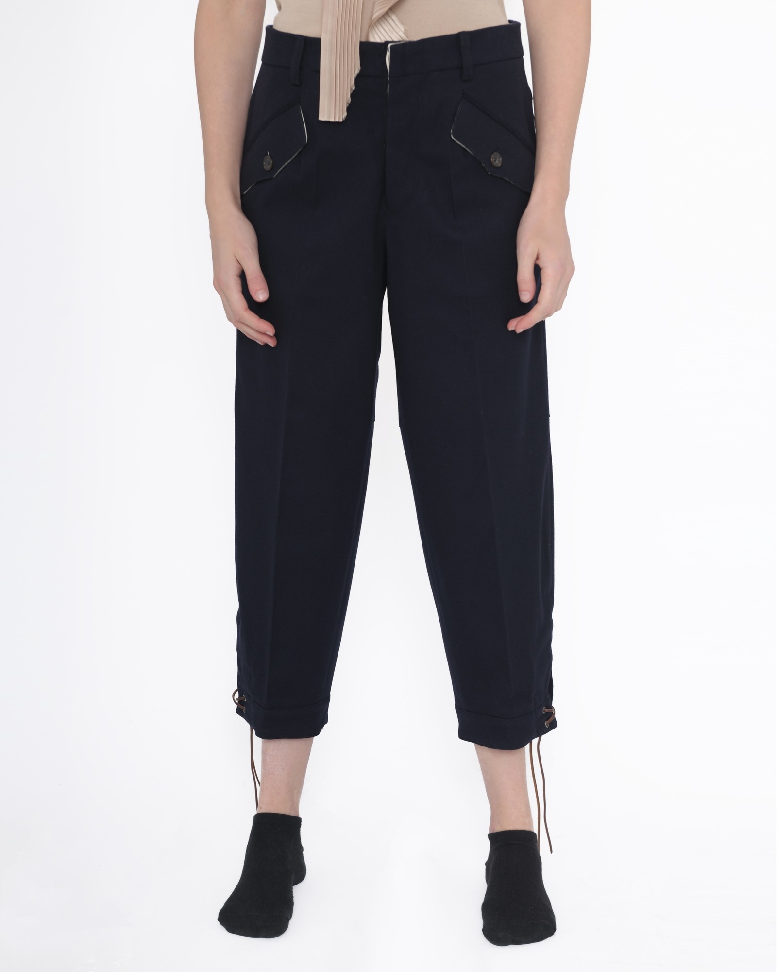 Pantalon chasseur Truenyc. Détails: Pantalon chausseur, double poches plaquées avec rabats devant, laçage bas de pantalon, système de fermeture avec patte de boutonnage milieu devant.