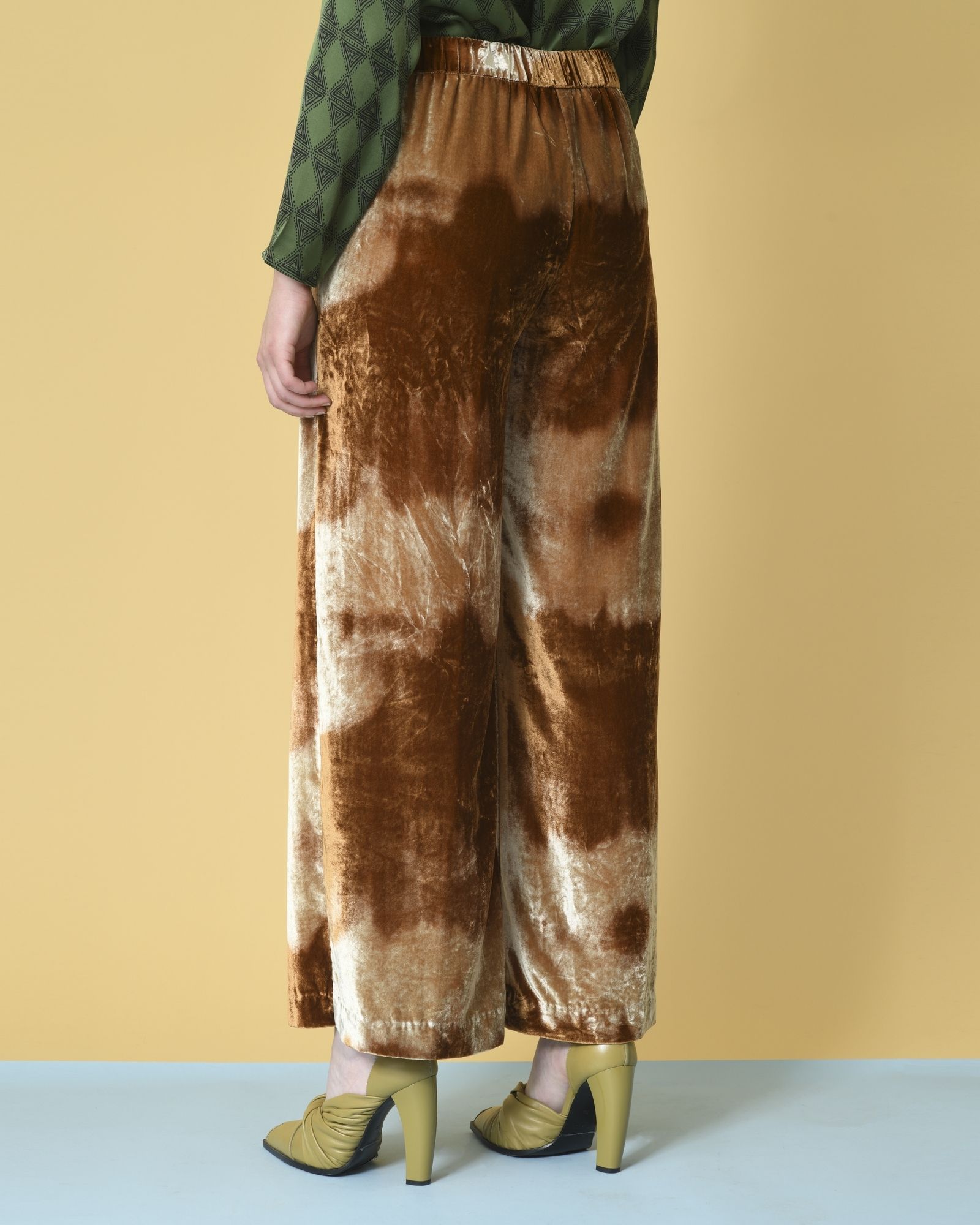 Ce pantalon en velours est un mélange d’élégance et de confort, ce modèle est réalisé de manière originale donnant un effet tie & dye au velours. Combinez-le aussi bien à des baskets qu’à des talons aiguilles.