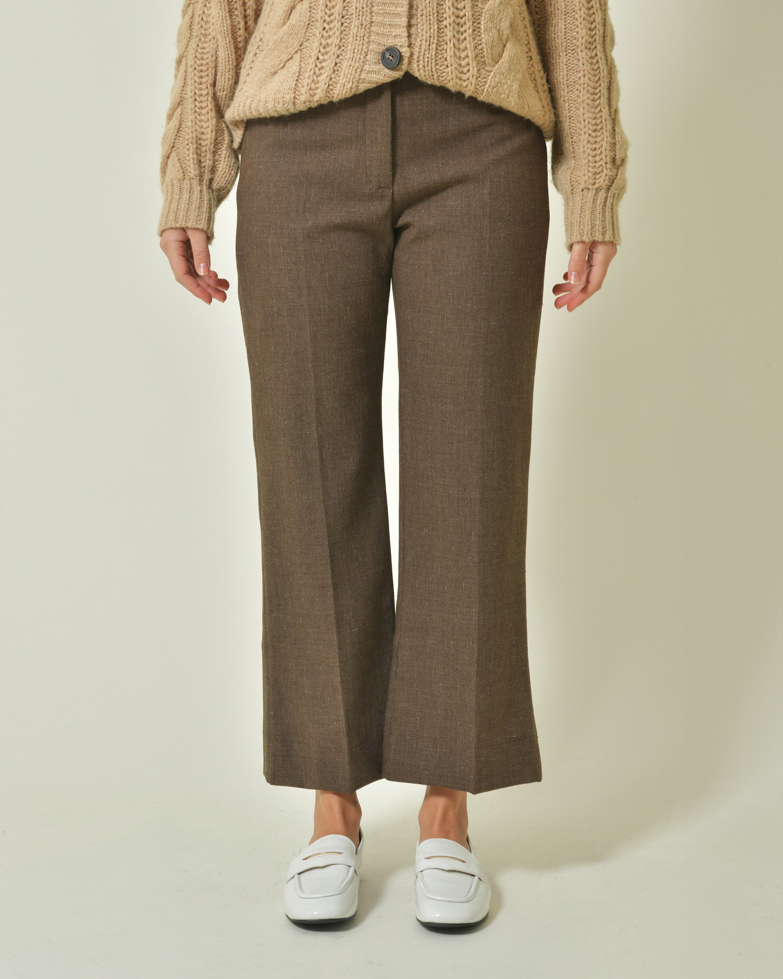 Pantalon fuselé raccourci en laine à plis pressés Momoni