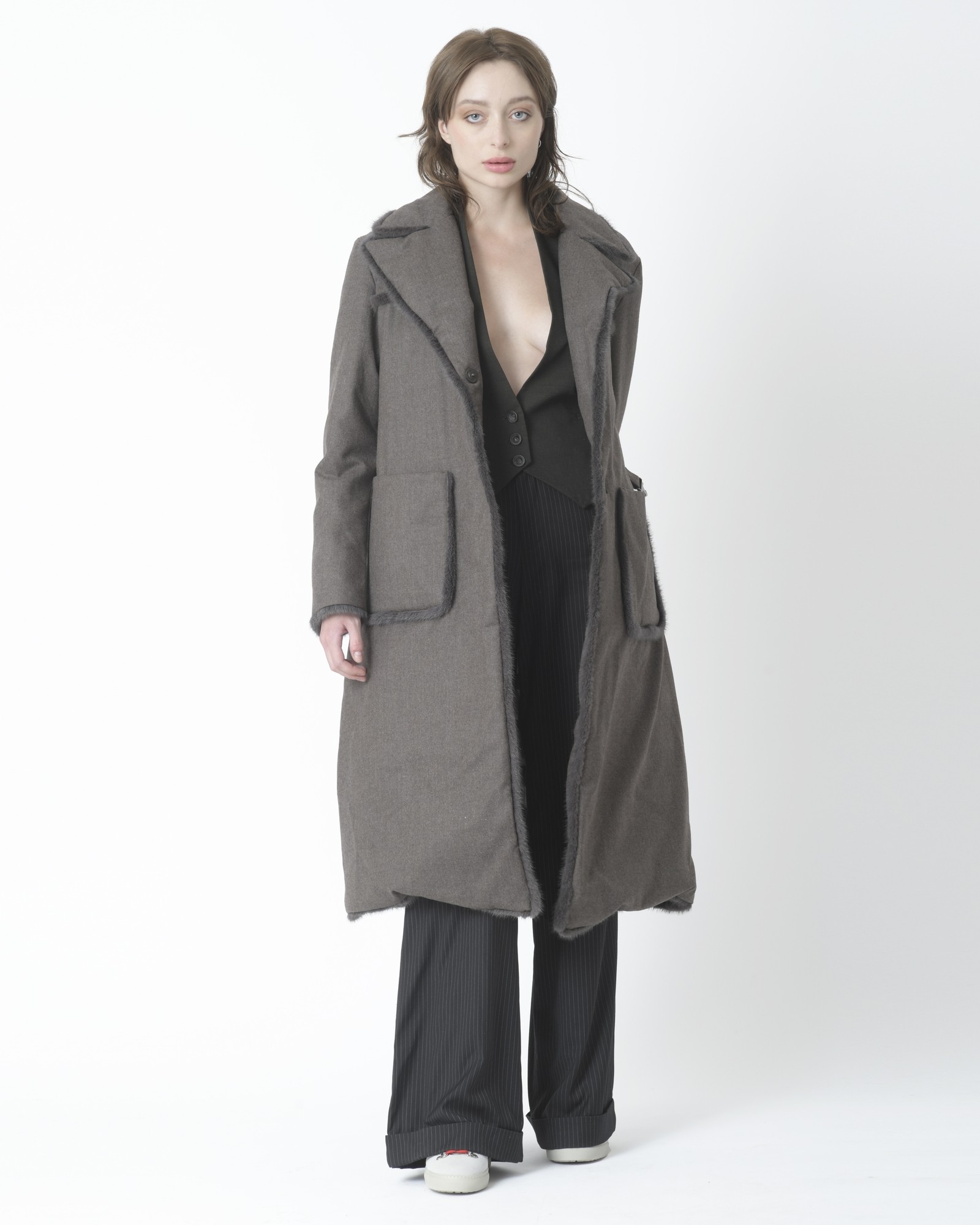 Le mannequin mesure 1m77 et porte une taille 36.