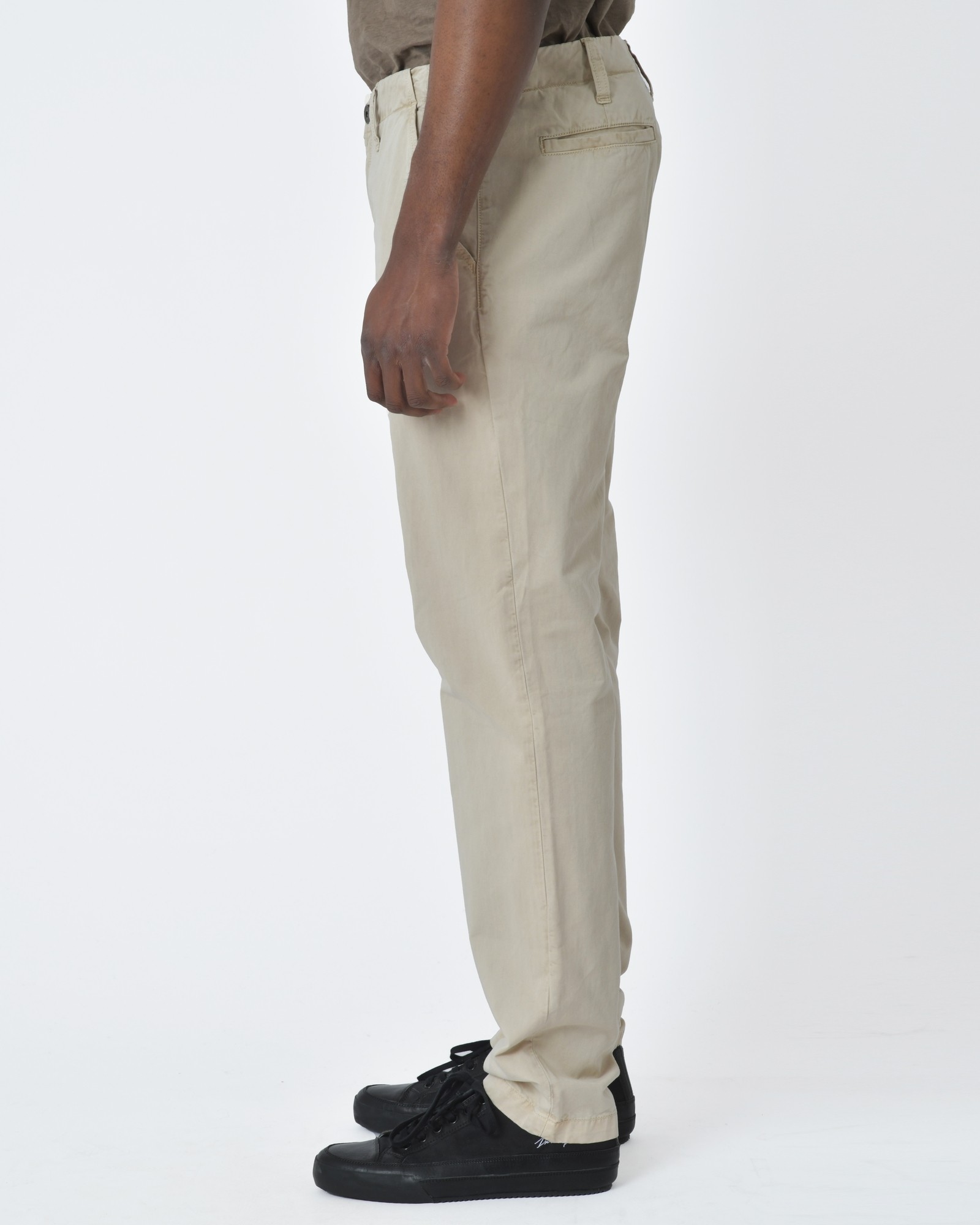 Pantalon beige J Brand. Détails: Pantalon beige, poches italiennes, poches double passepoilées, passants à la ceinture, fermeture éclair et bouton milieu devant.