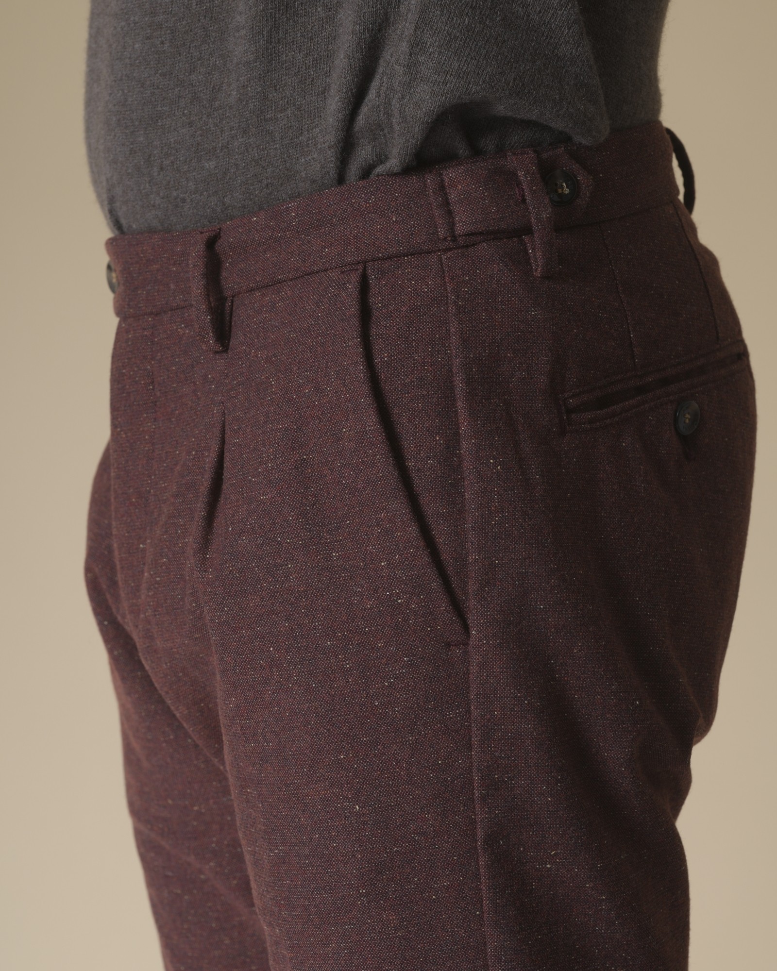 Ce pantalon rouge combine codes work wear et tissus vintage pour offrir une version du pantalon basique. Réalisé en coton et laine mélangé pour plus de chaleur et de confort, il présente une taille haute et des plis pour une silhouette flatteuse.