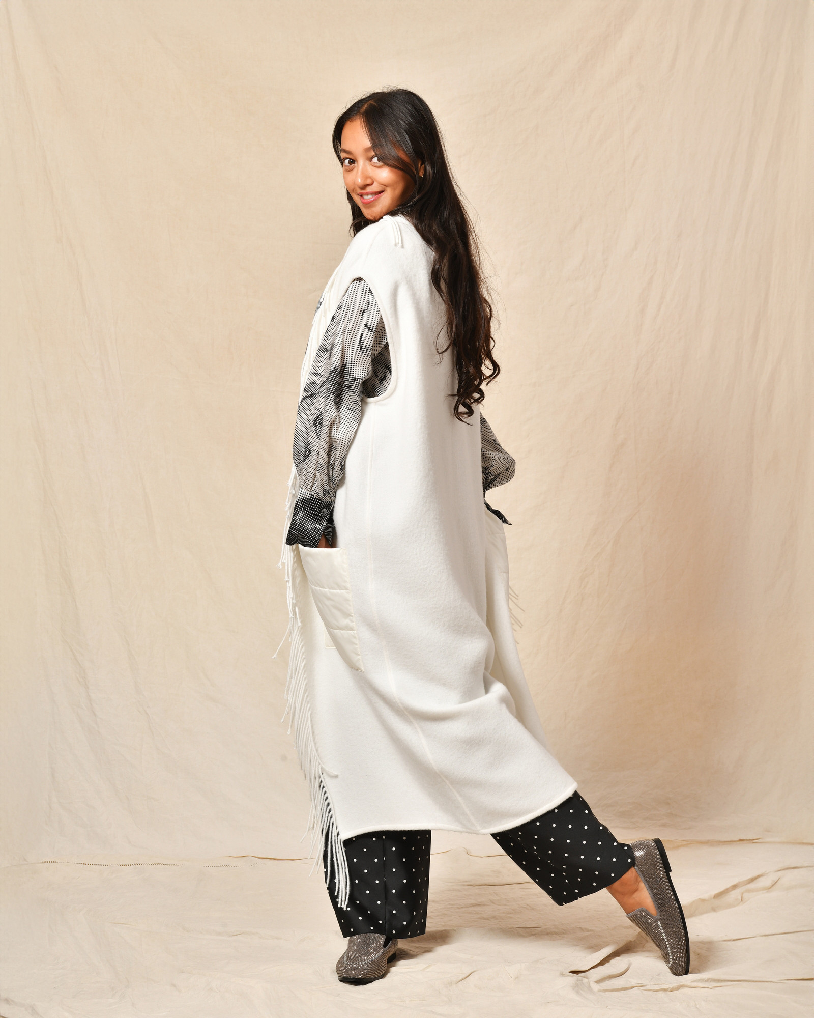 Gilet blanc à franges Clips