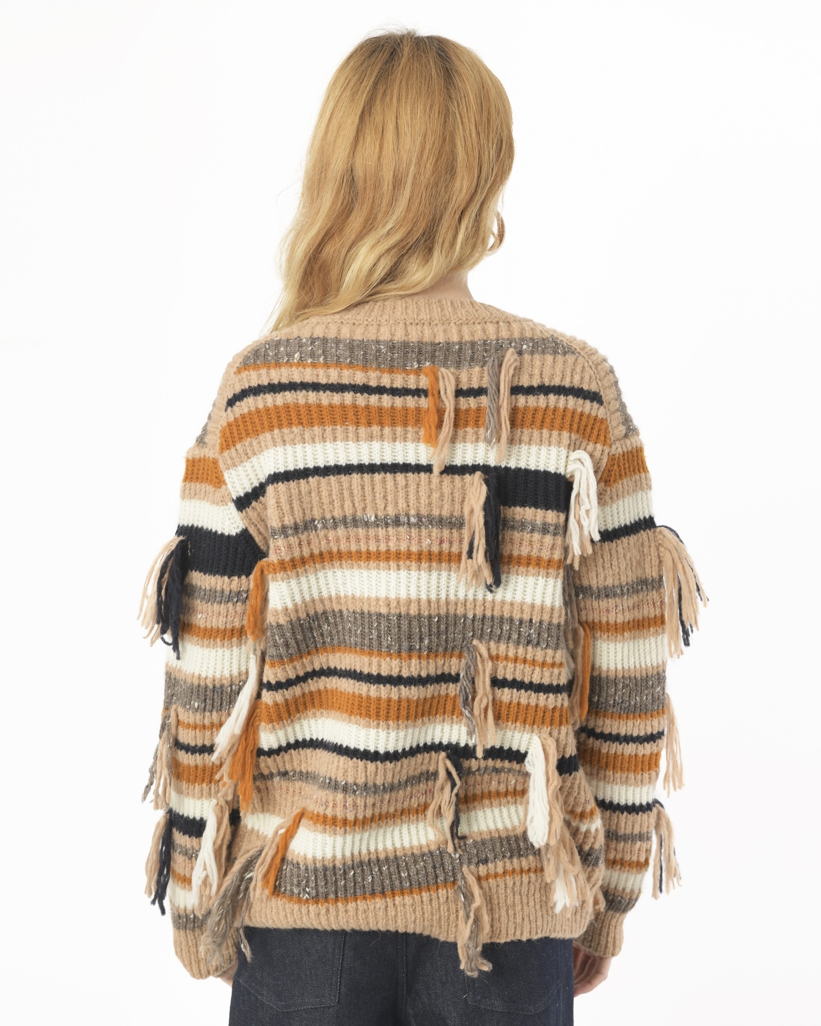 Pull à franges en laine Maison Flâneur. Détails: Pull à franges, col rond, manches longues.