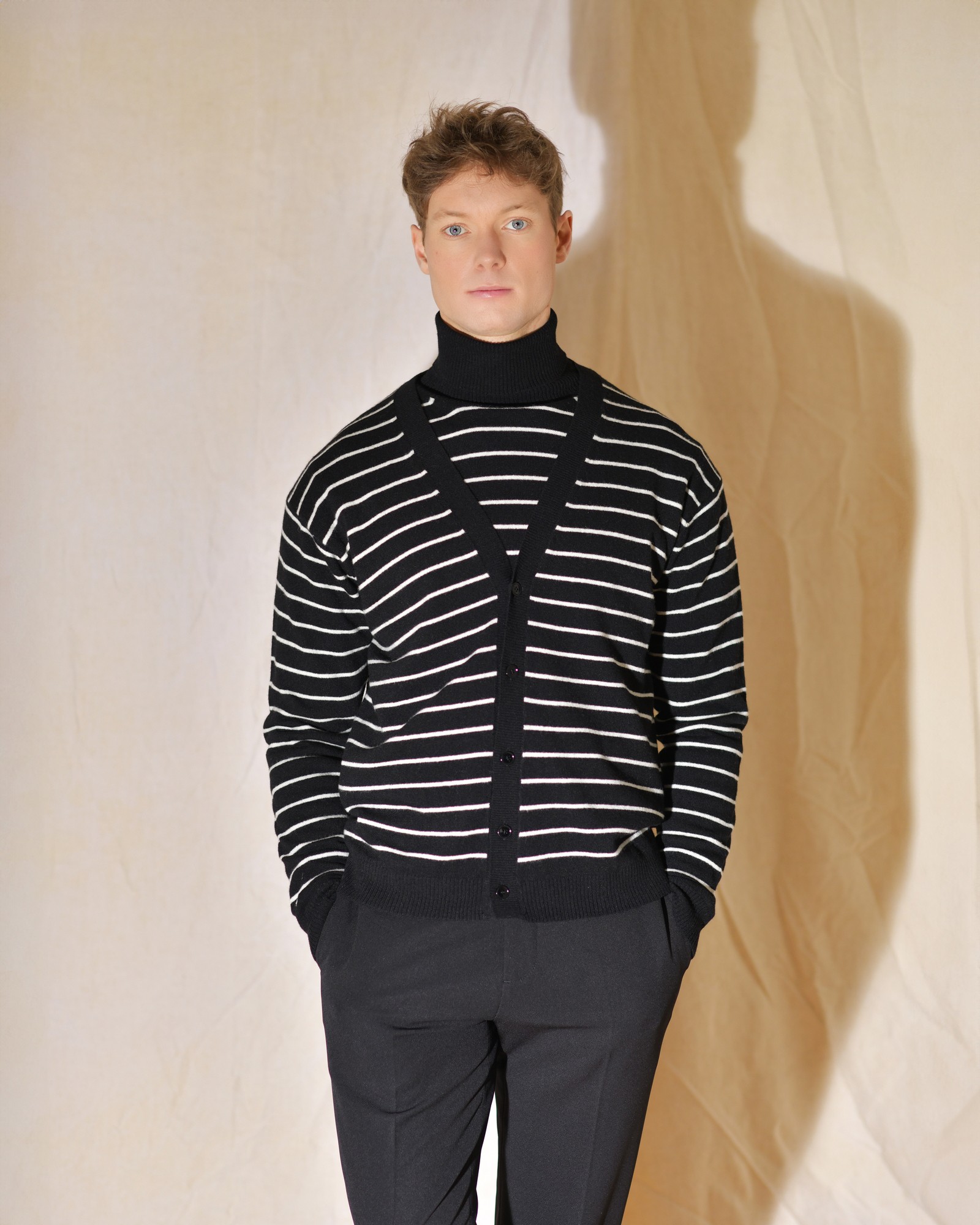 Cardigan en laine mélangée à rayures horizontales Daniele Alessandrini