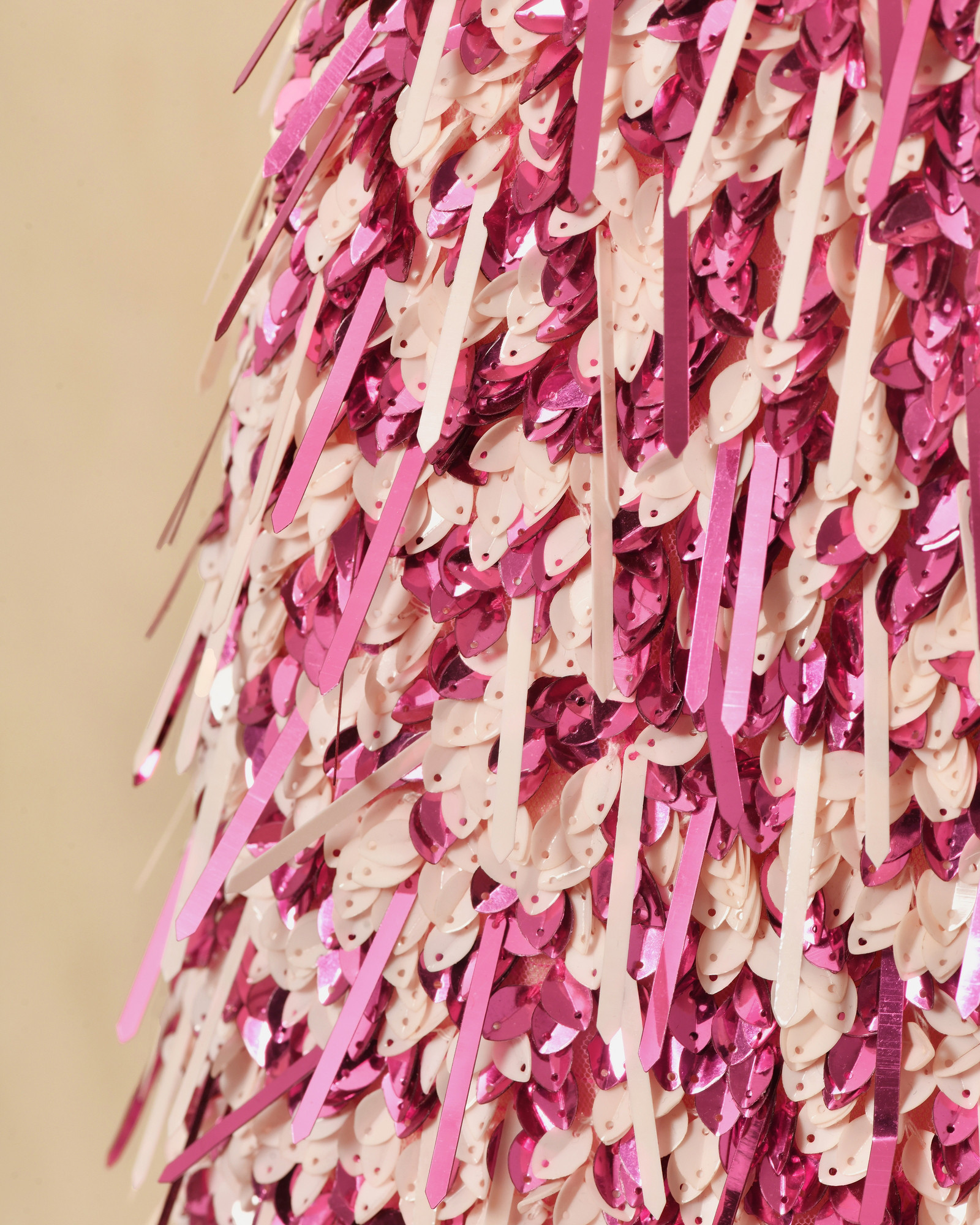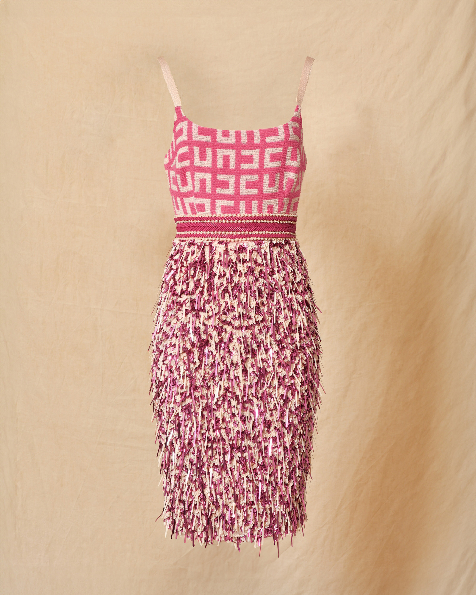 Robe en crêpe satiné blanc à carreaux SVNTY