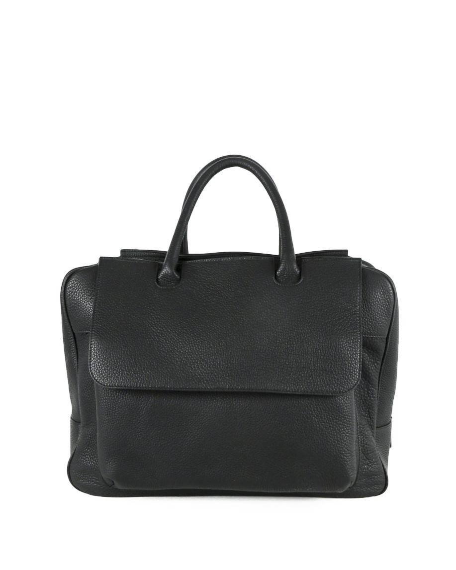 Sac à main 48h en cuir grainé noir Falorni
