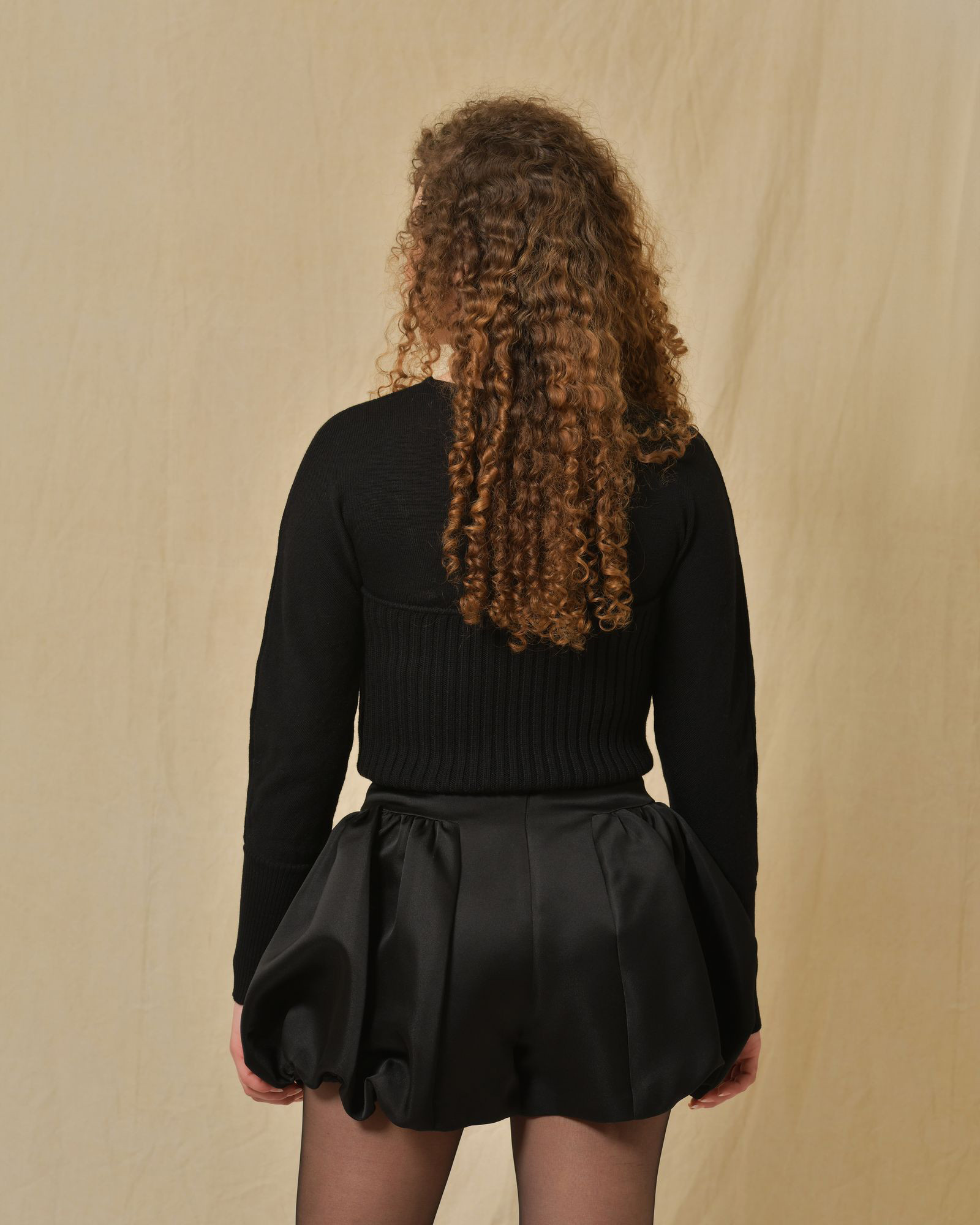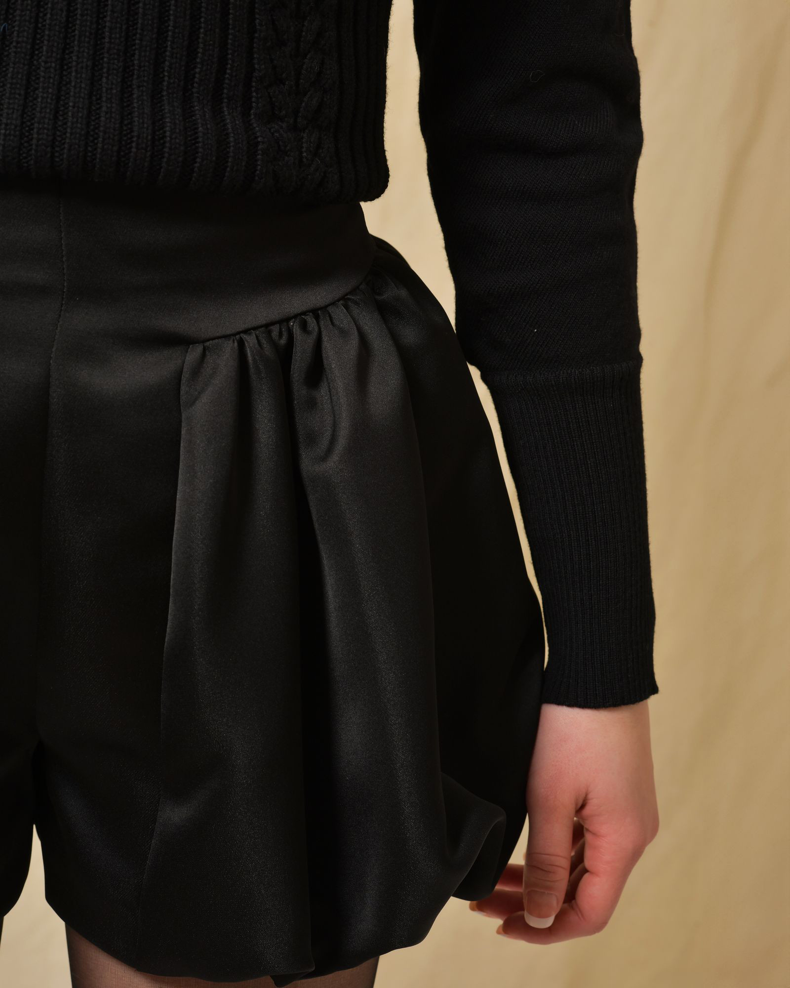 Short noir à coupe ballon Edward Achour, une pièce courte et structurée qui apporte une touche sophistiquée et moderne à votre tenue.