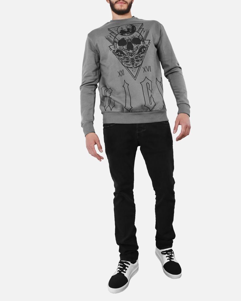 Sweat en coton gris à flocage tête de mort John Richmond