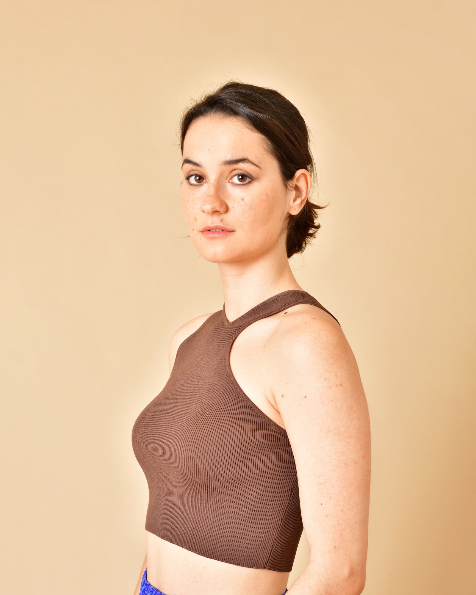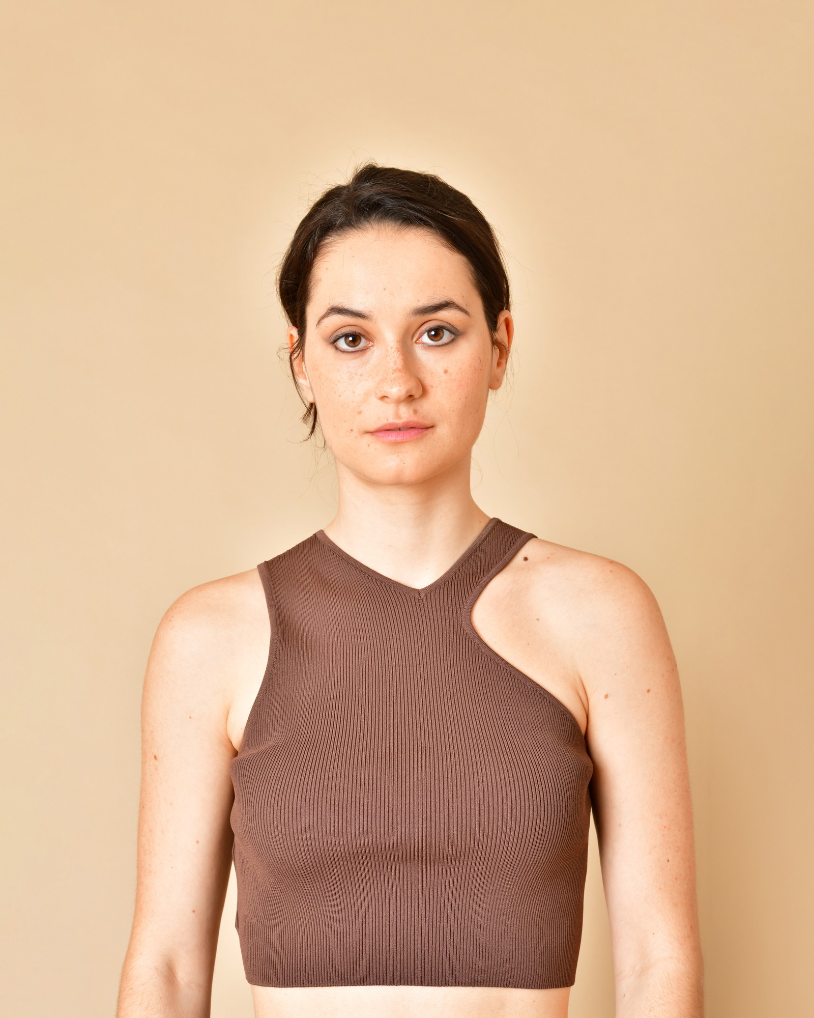 Top côtelé raccourci et asymétrique marron Liviana Conti