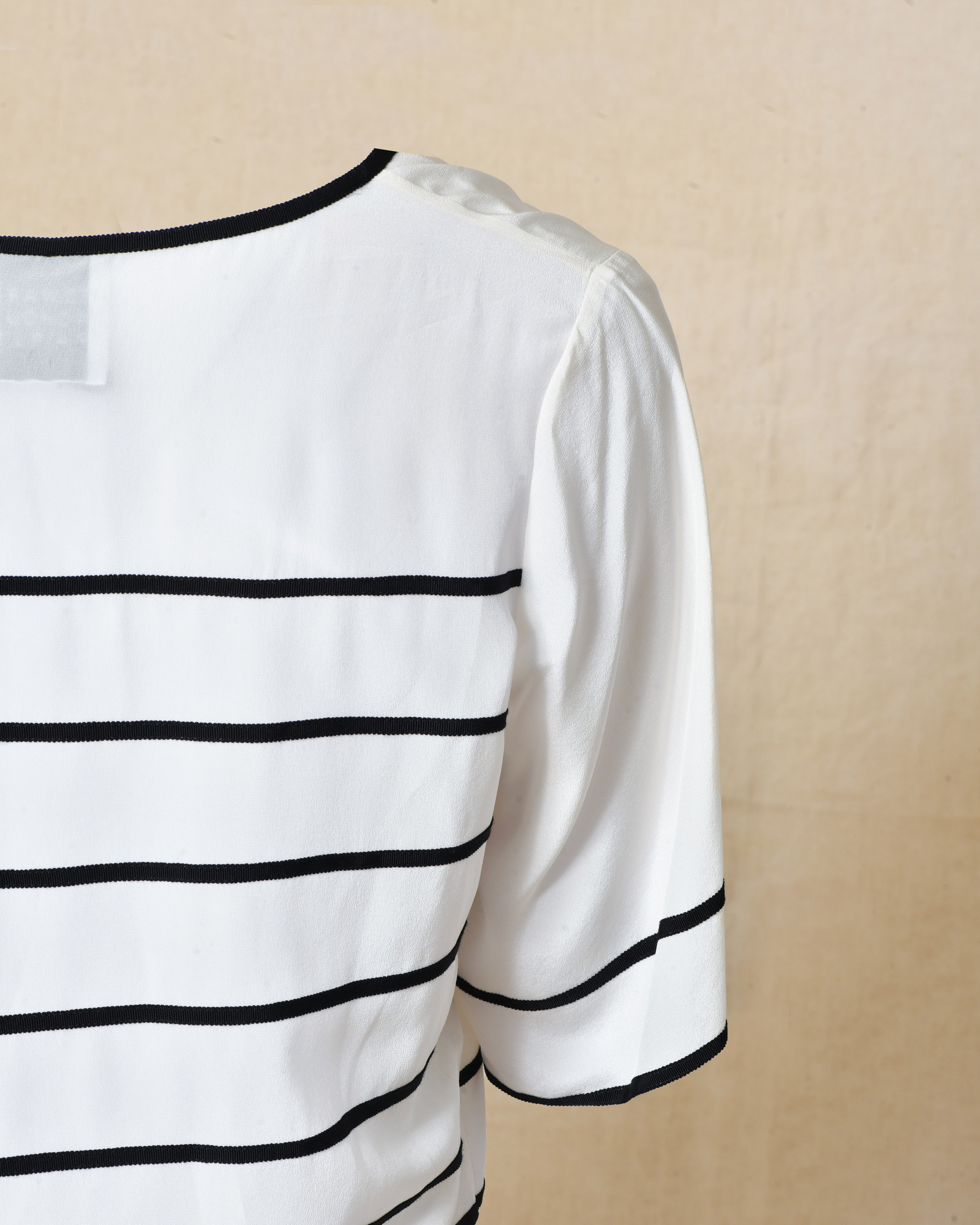 Top en soie blanc à fines rayures noires Edward Achour