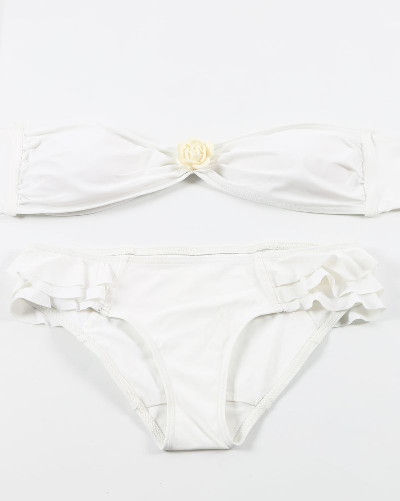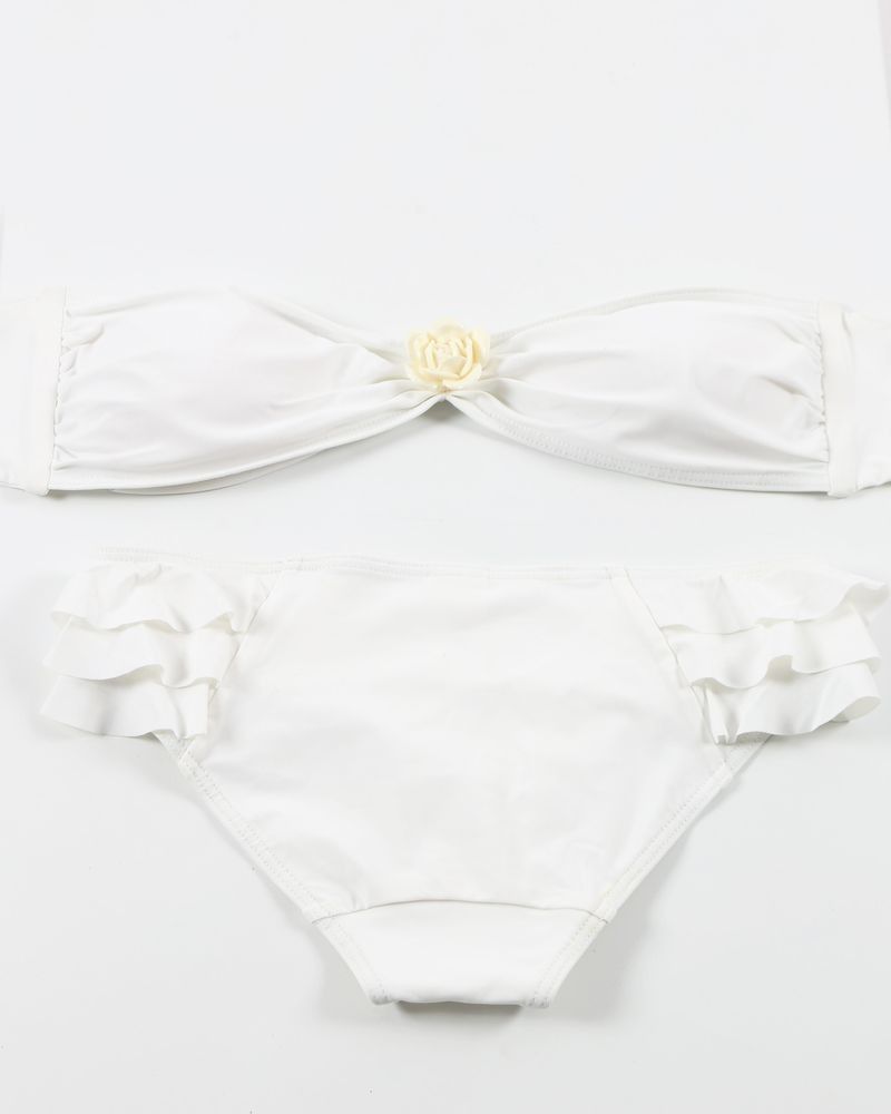 Bikini blanc à broche et volants Pamela de Beaumane
